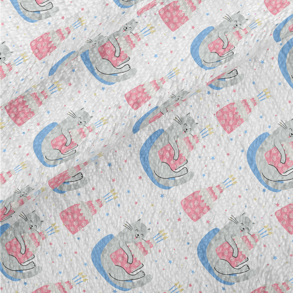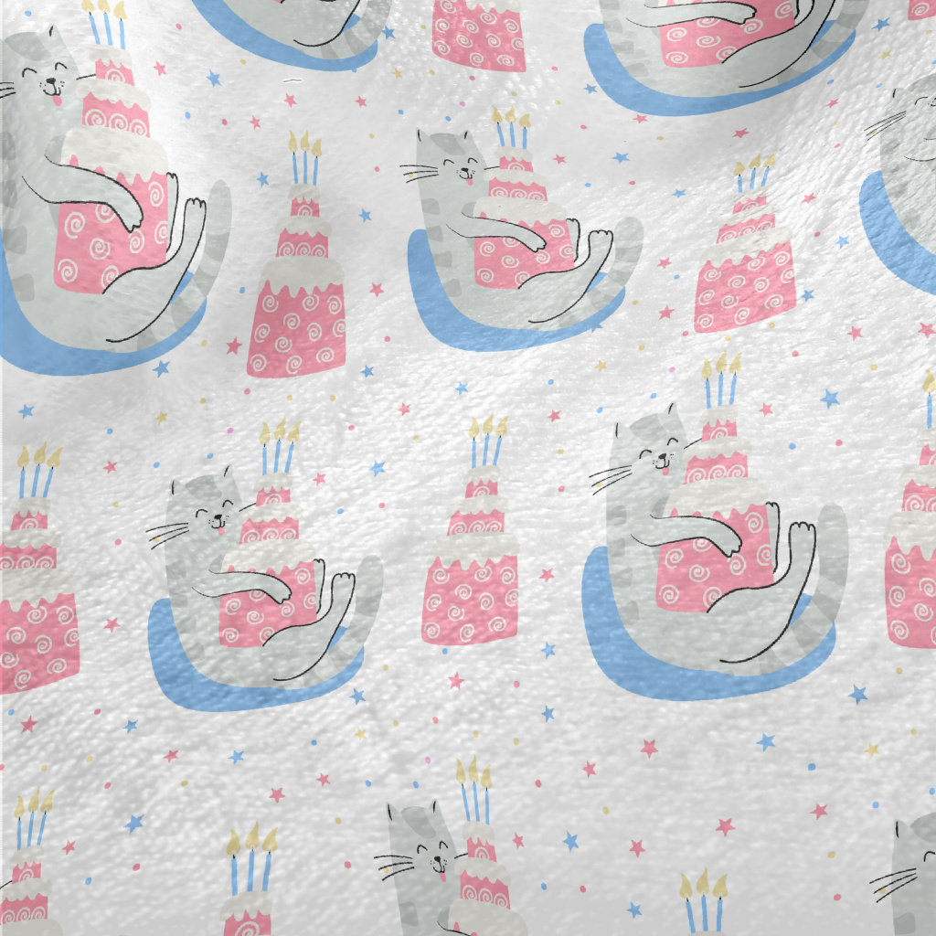 抱著蛋糕的貪吃貓法蘭絨(幅寬150公分)
