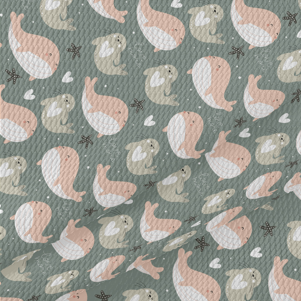 水中玩耍的鯨魚和海豹泡泡布(幅寬160公分)