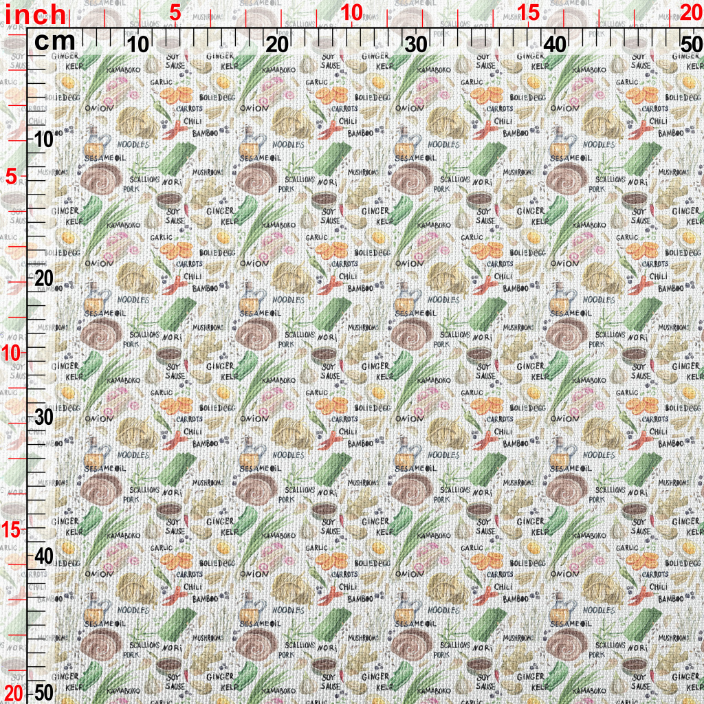 水彩風格的拉麵與配料牛津布(幅寬150公分)