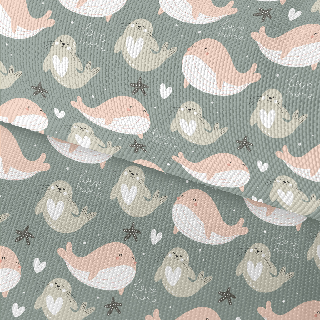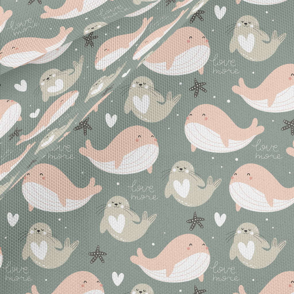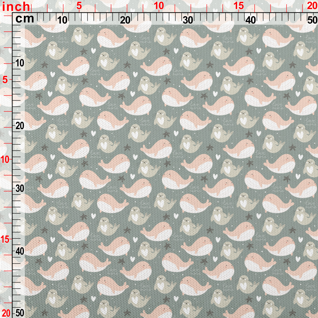 水中玩耍的鯨魚和海豹牛津布(幅寬150公分)