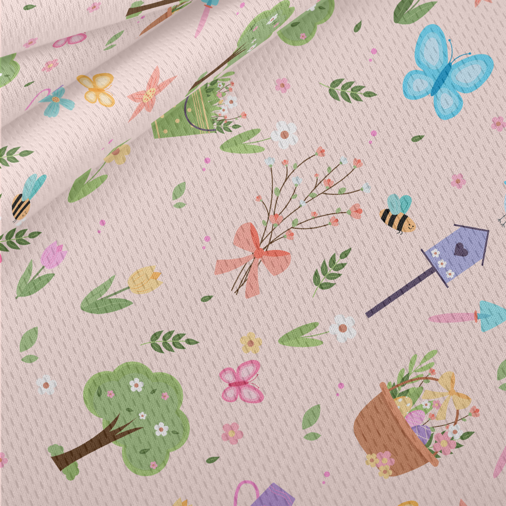 充滿春天氣息的花園鳥眼布(幅寬160公分)