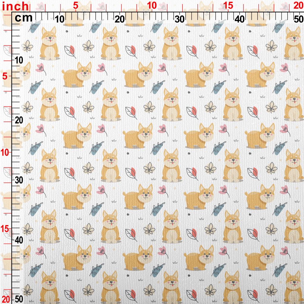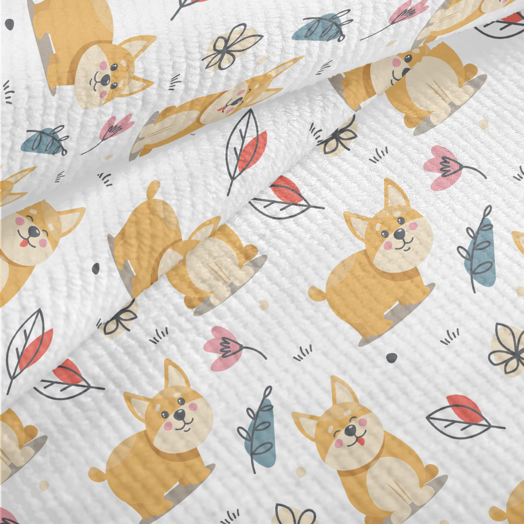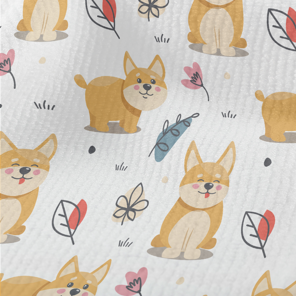 草地上玩耍的小柯基毛巾布(幅寬160公分)
