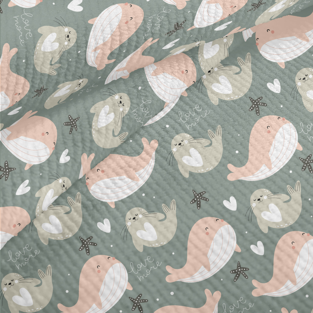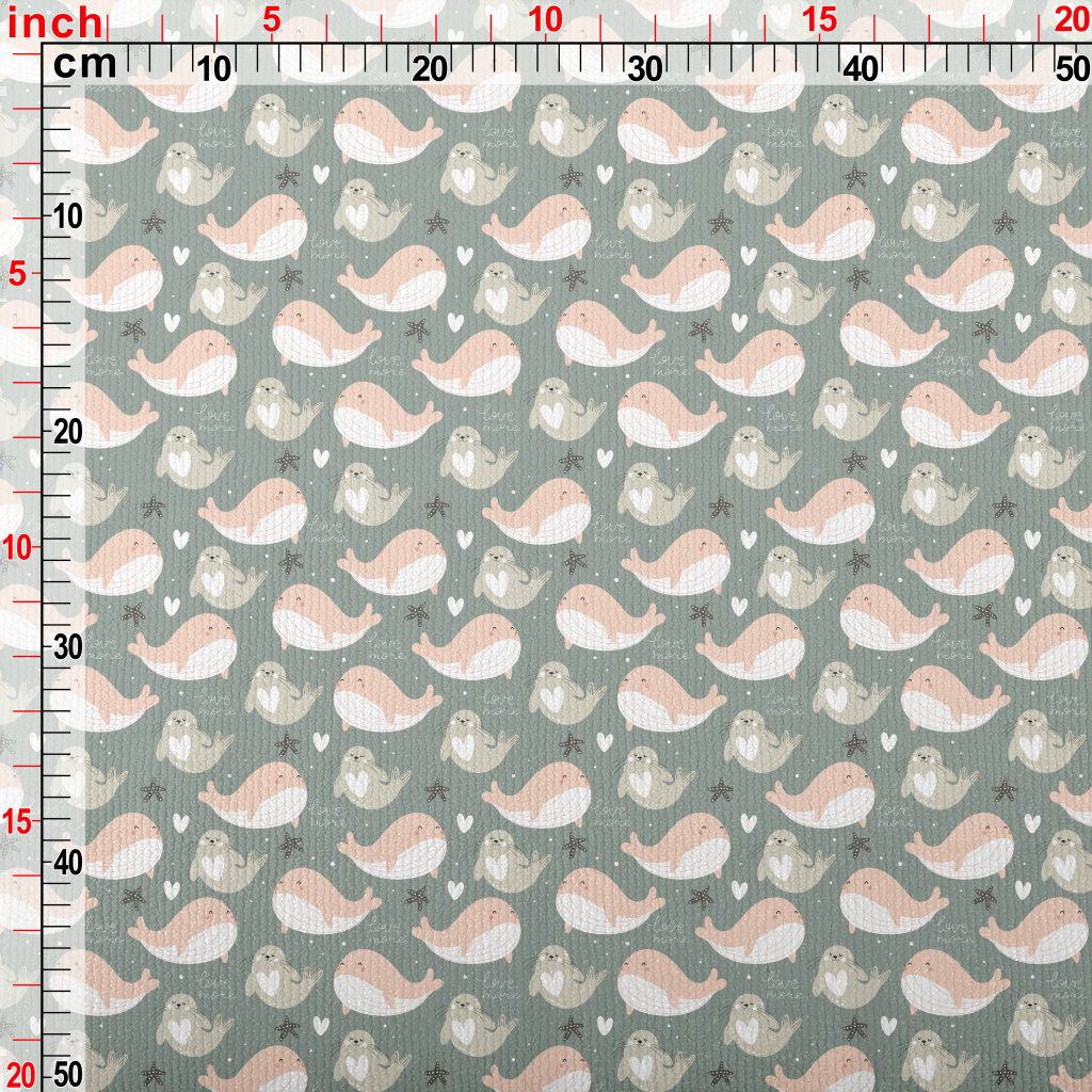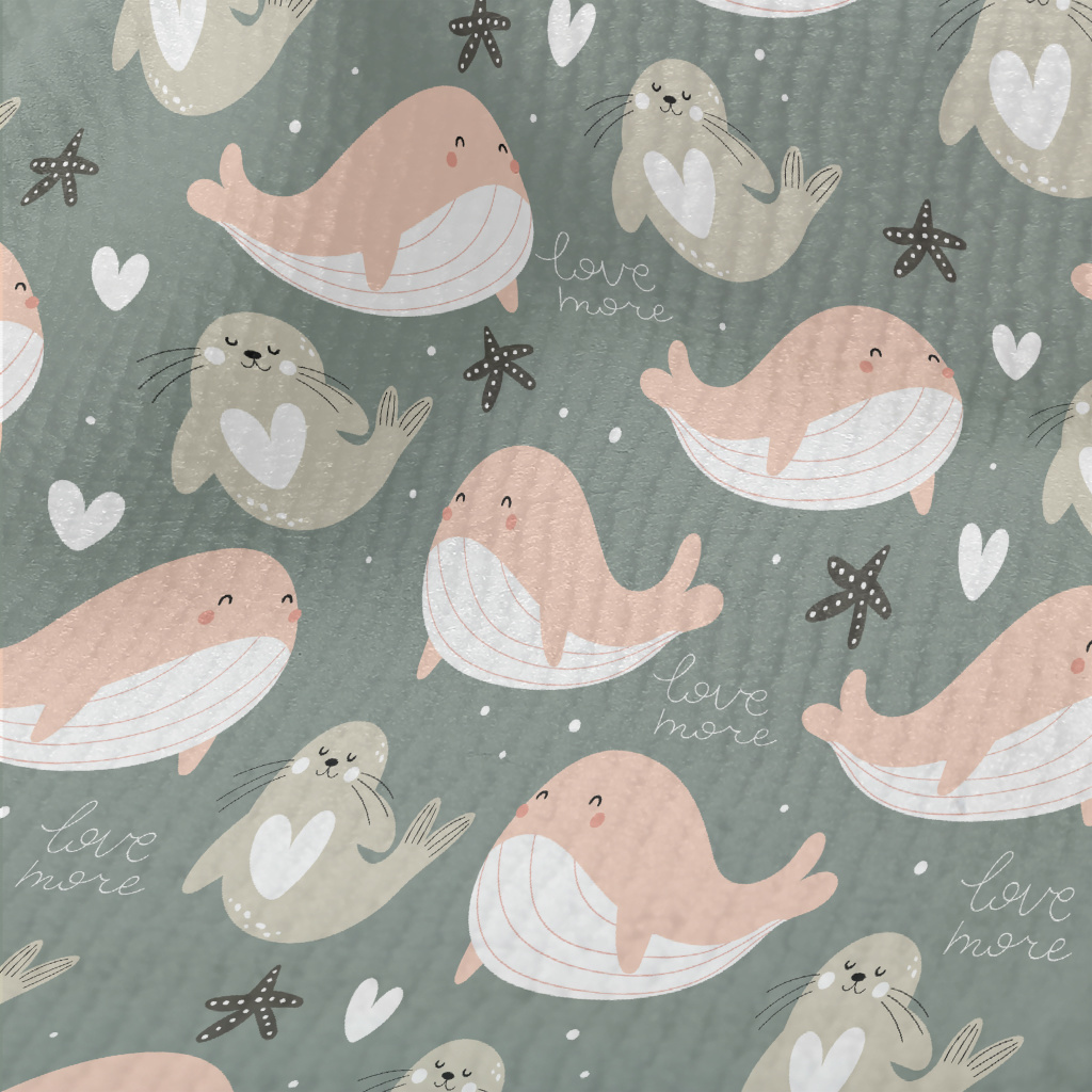 水中玩耍的鯨魚和海豹毛巾布(幅寬160公分)