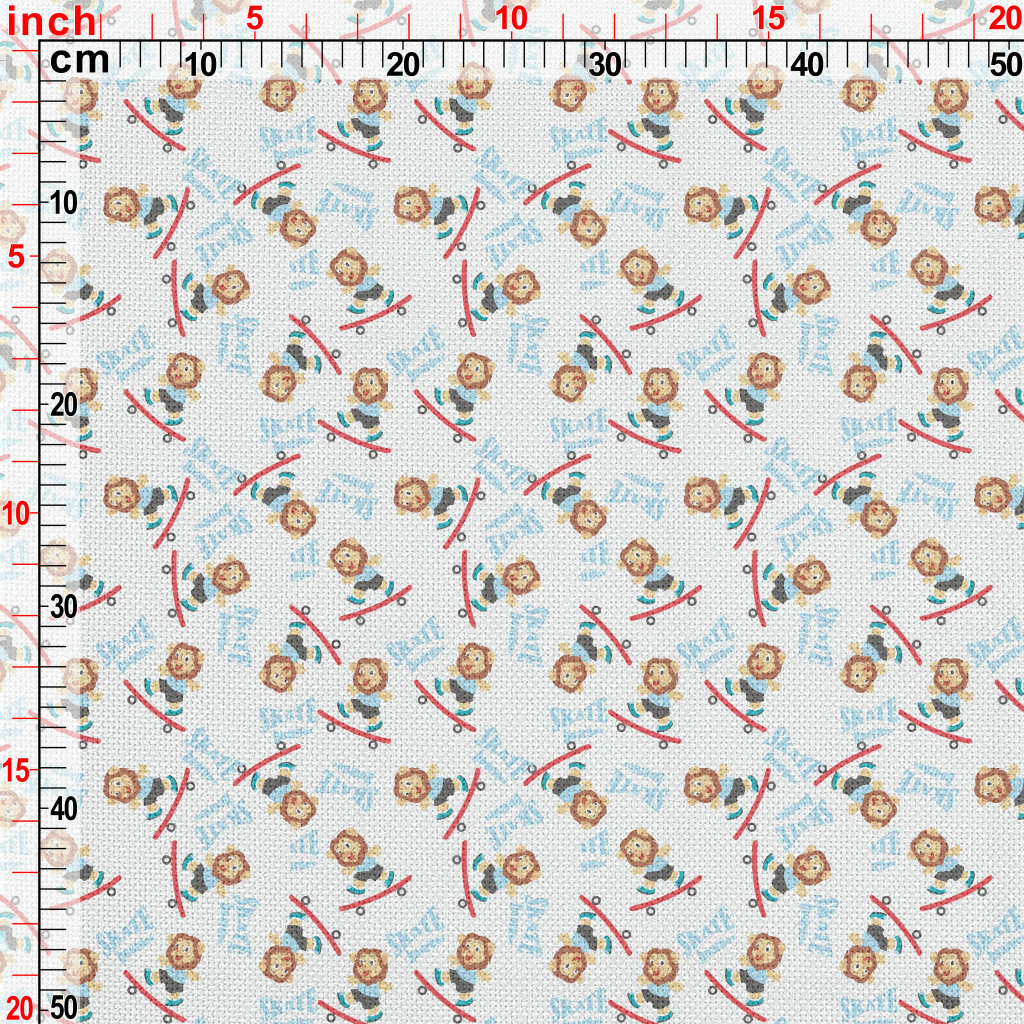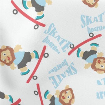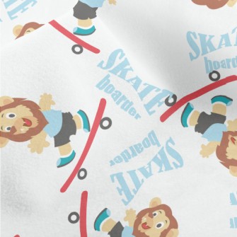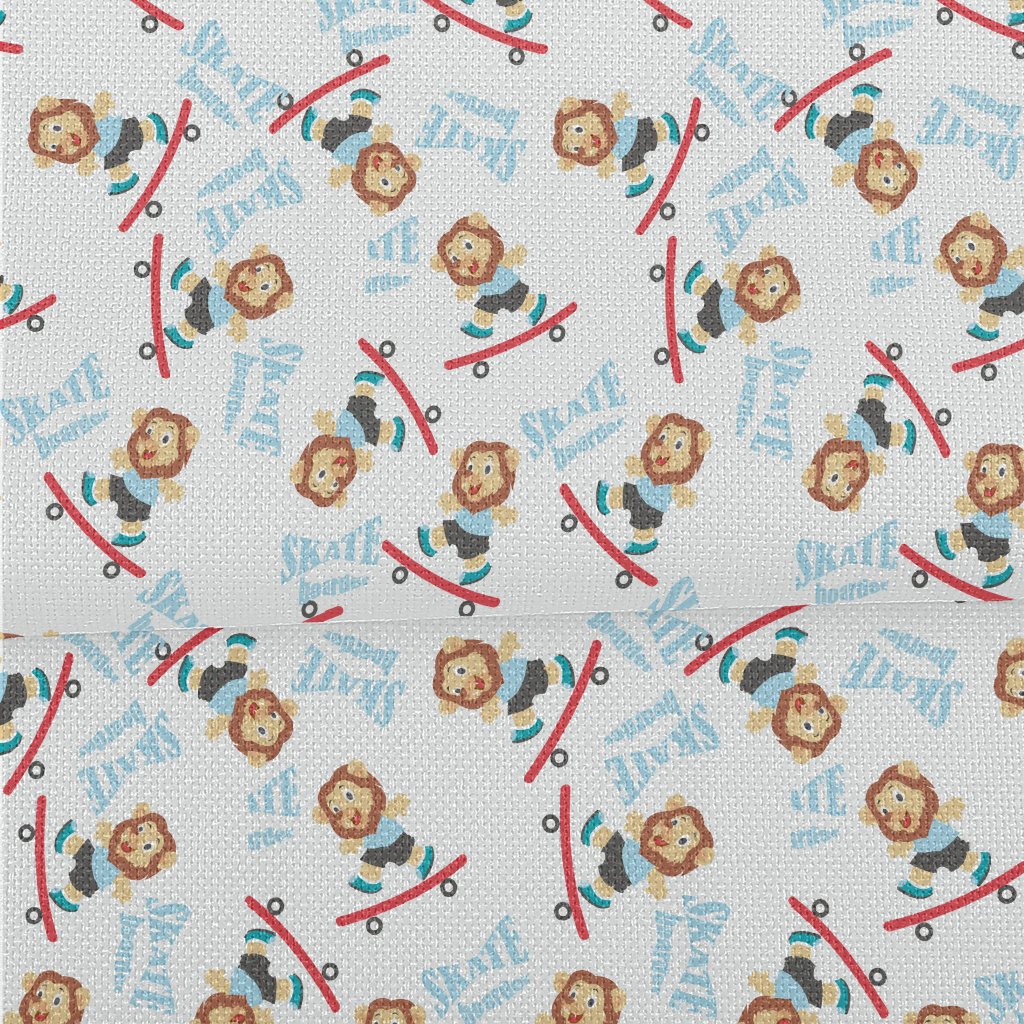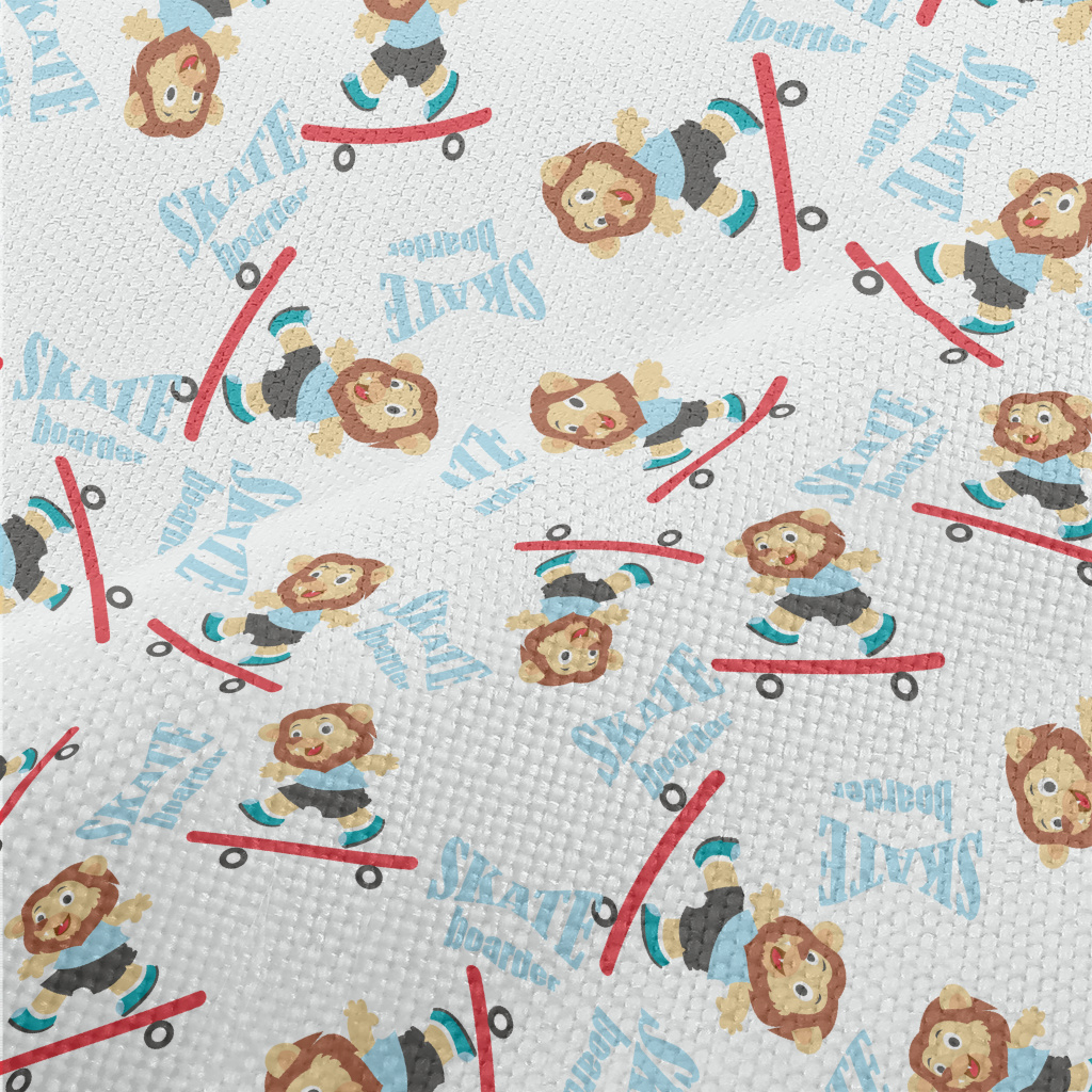玩滑板的可愛獅子麻布(幅寬150公分)