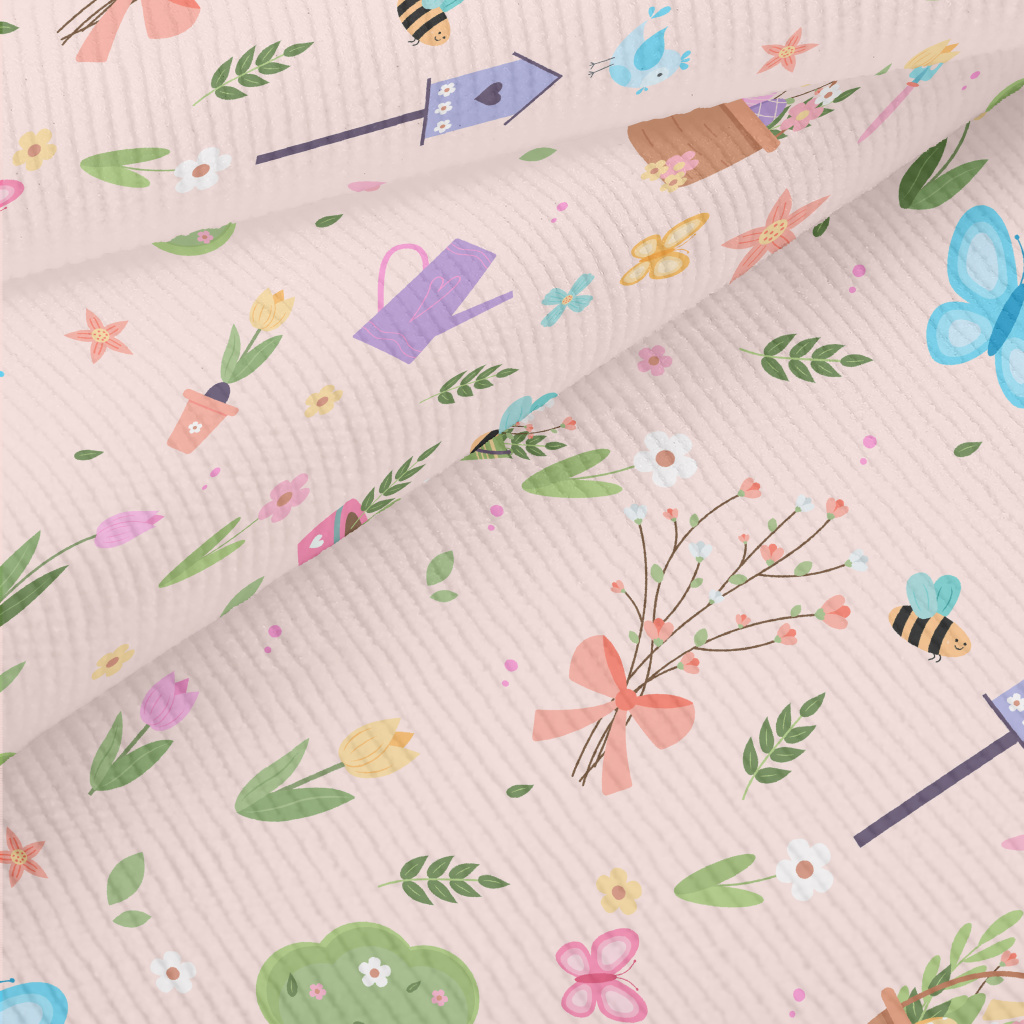充滿春天氣息的花園燈芯絨(幅寬150公分)