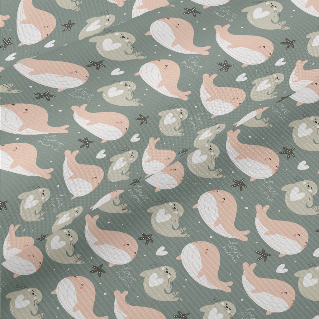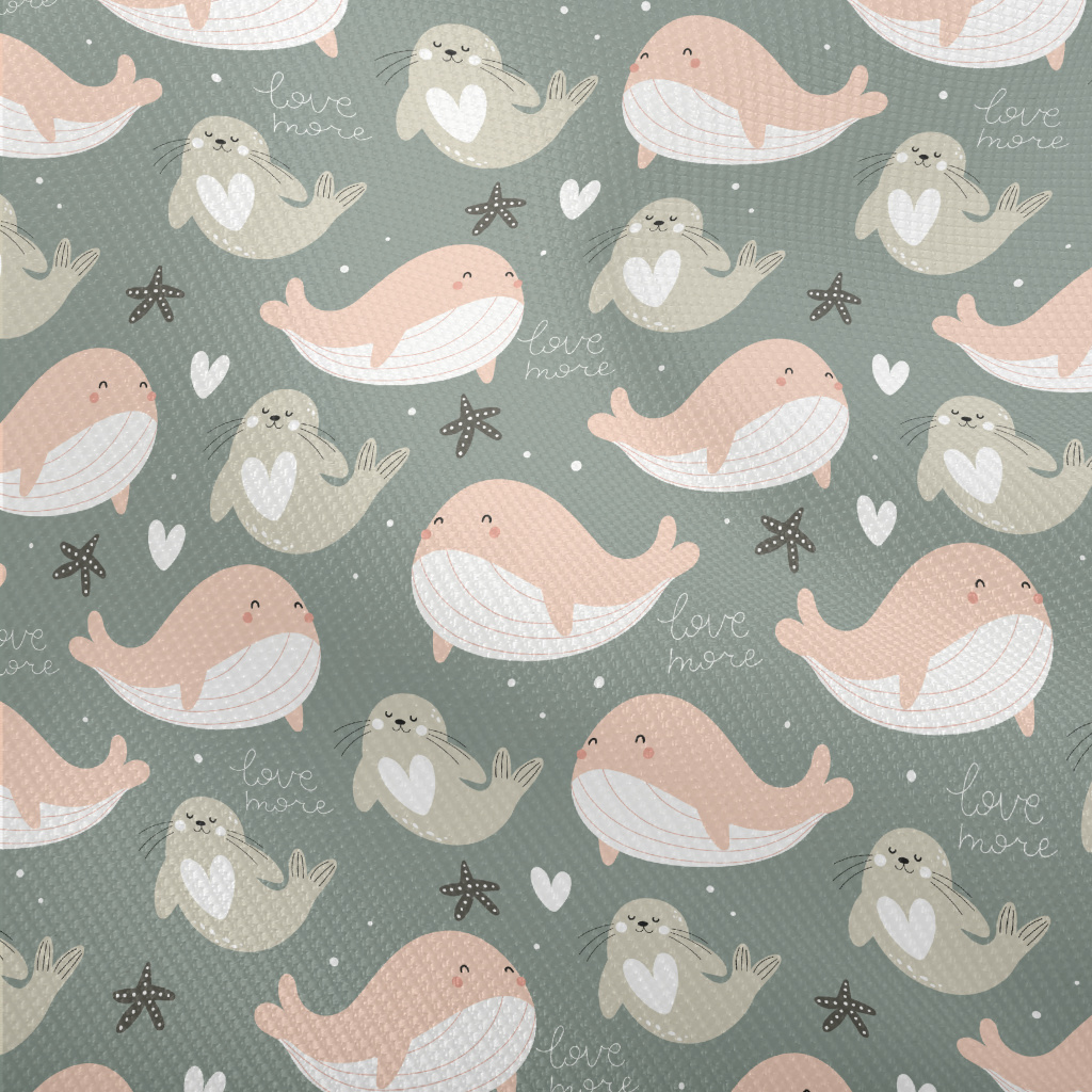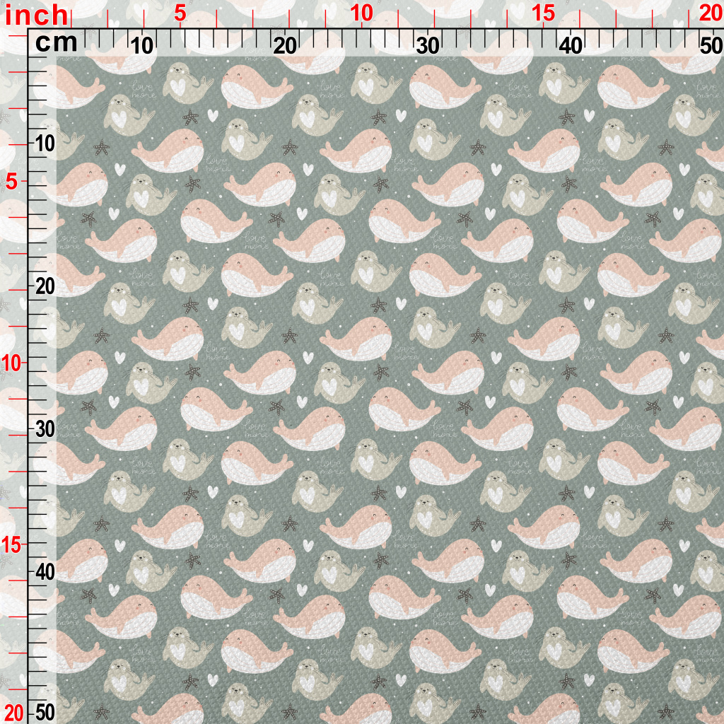 水中玩耍的鯨魚和海豹雙斜布(幅寬150公分)