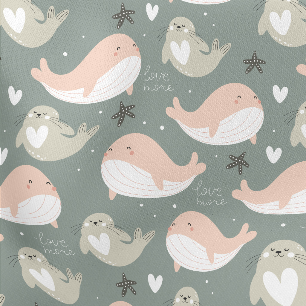 水中玩耍的鯨魚和海豹羅馬布(幅寬160公分)