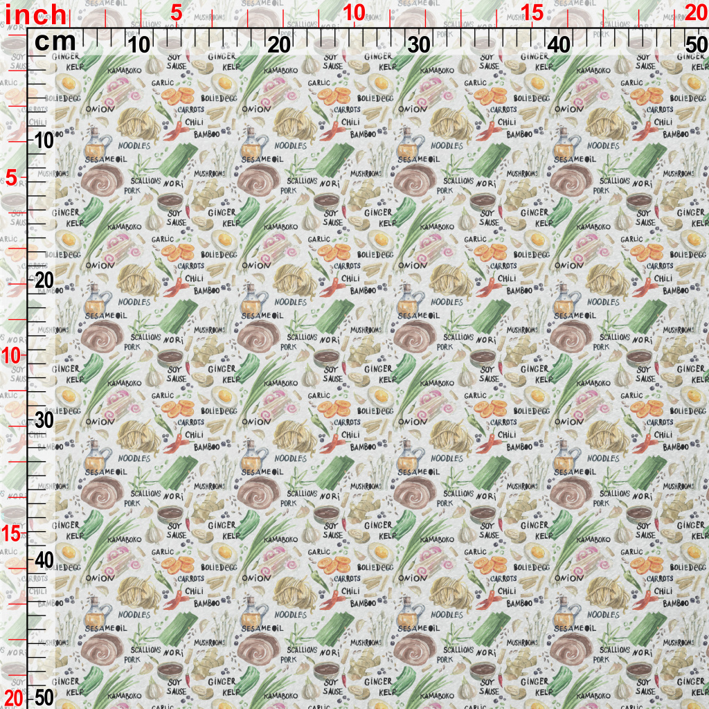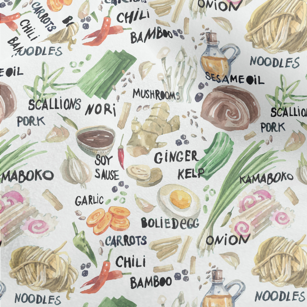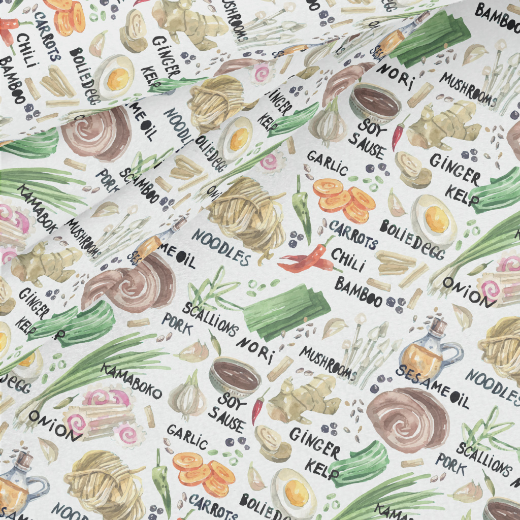 水彩風格的拉麵與配料水晶絨(幅寬160公分)