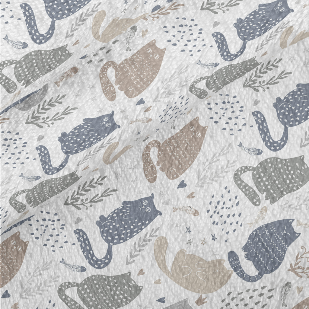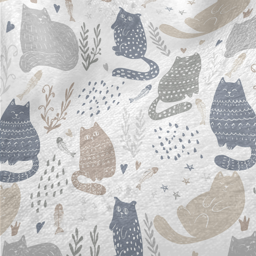 塗鴉風格呈現的頑皮貓法蘭絨(幅寬150公分)