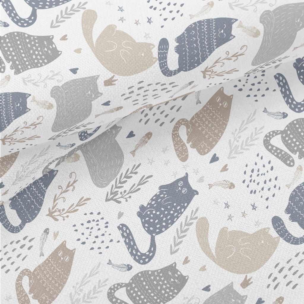 塗鴉風格呈現的頑皮貓竹節麻(幅寬150公分)