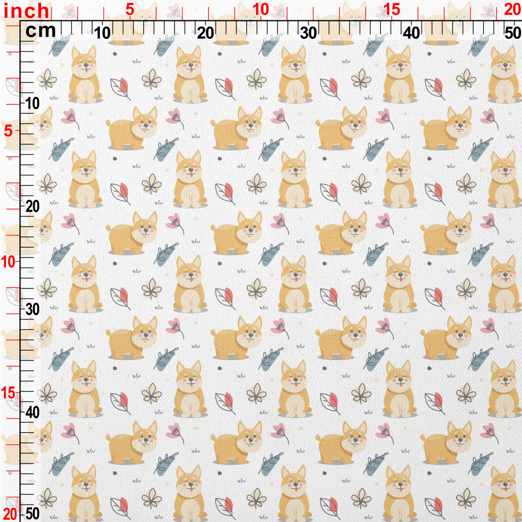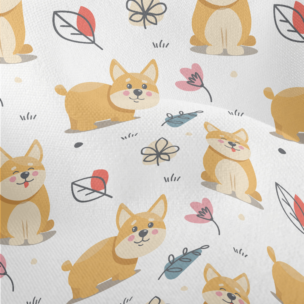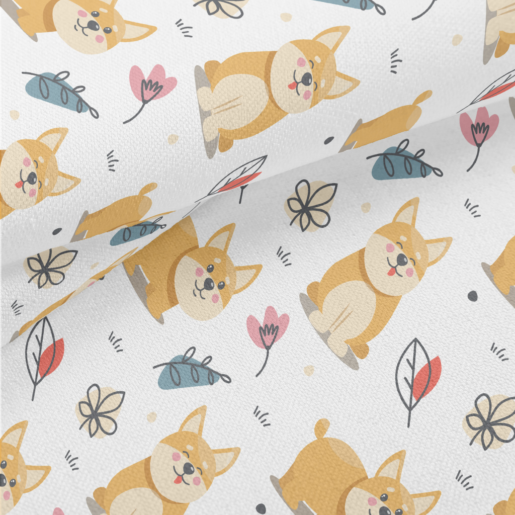 草地上玩耍的小柯基竹節麻(幅寬150公分)