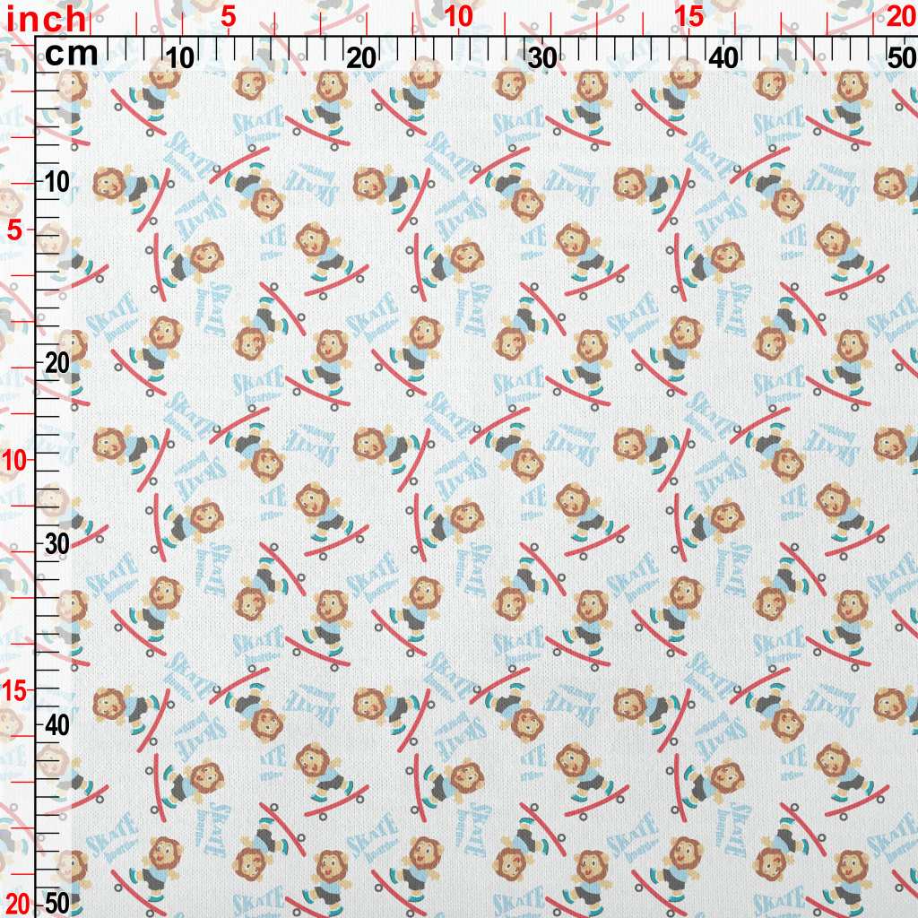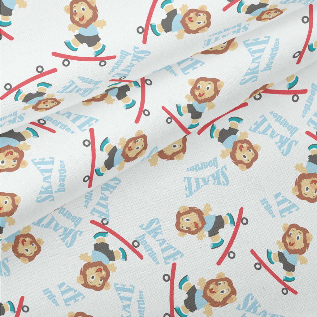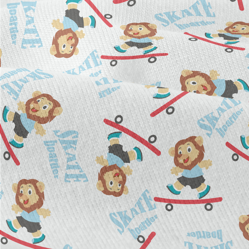 玩滑板的可愛獅子仿棉布(幅寬150公分)