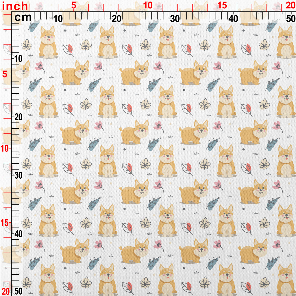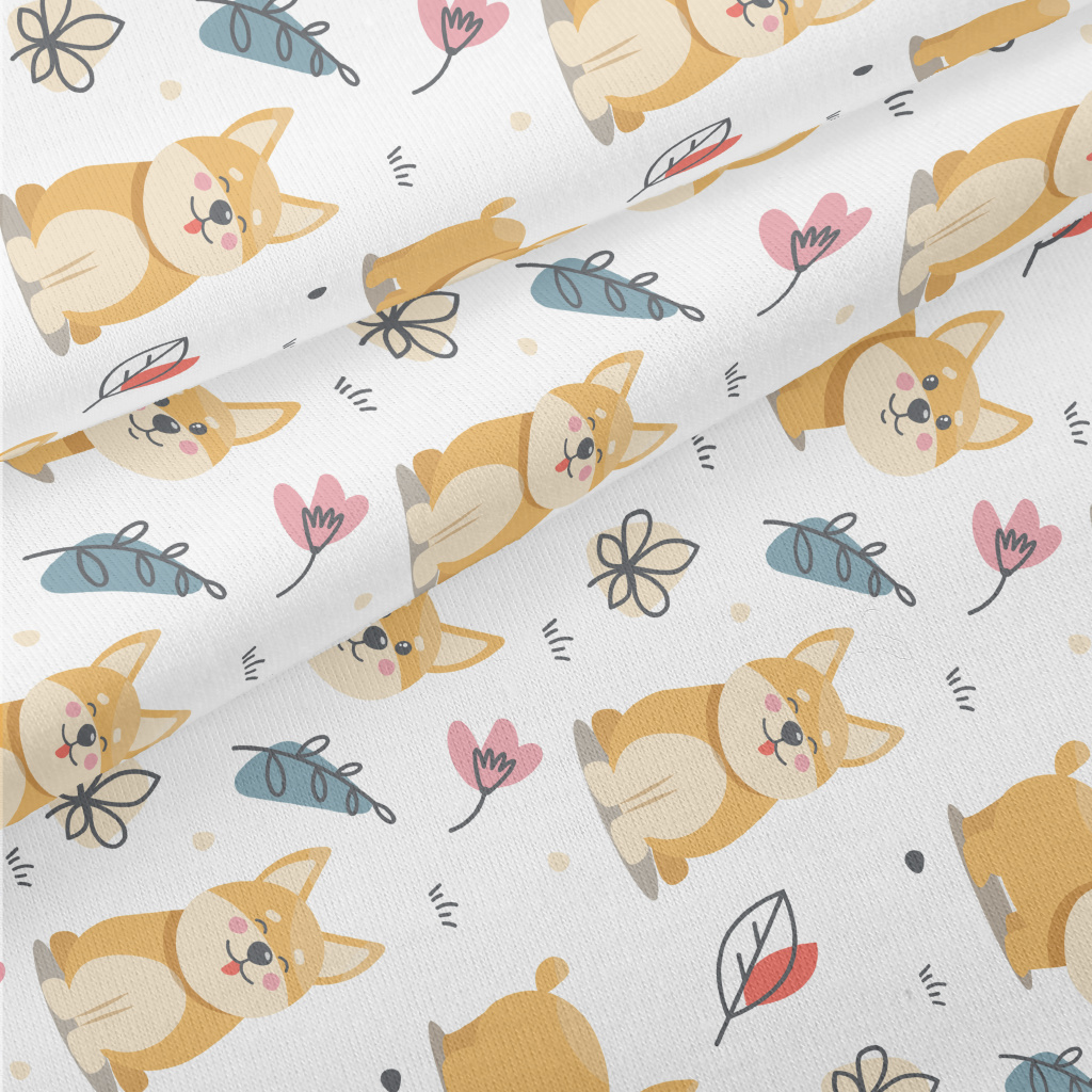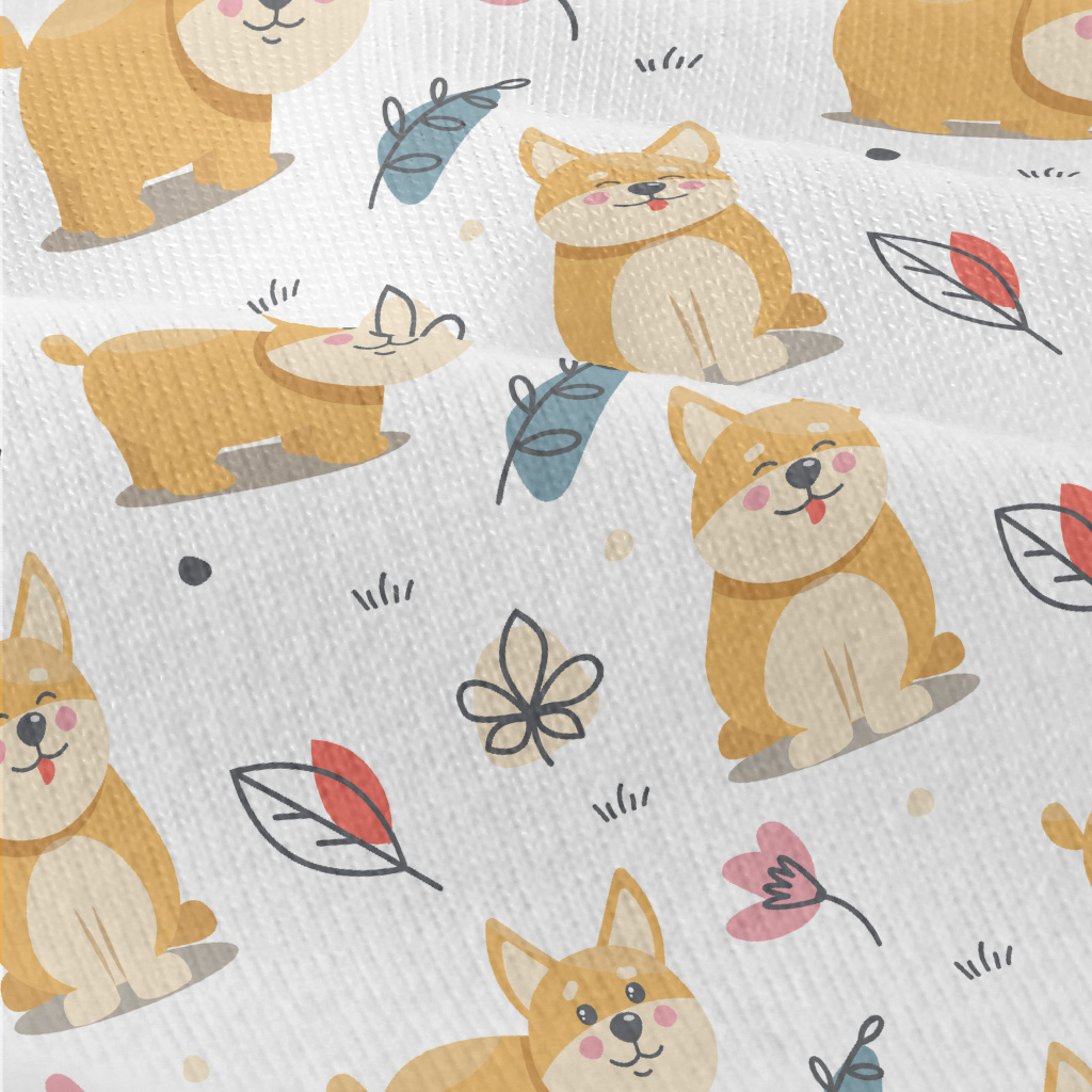 草地上玩耍的小柯基仿棉布(幅寬150公分)