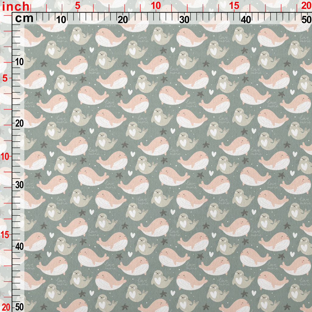 水中玩耍的鯨魚和海豹仿棉布(幅寬150公分)