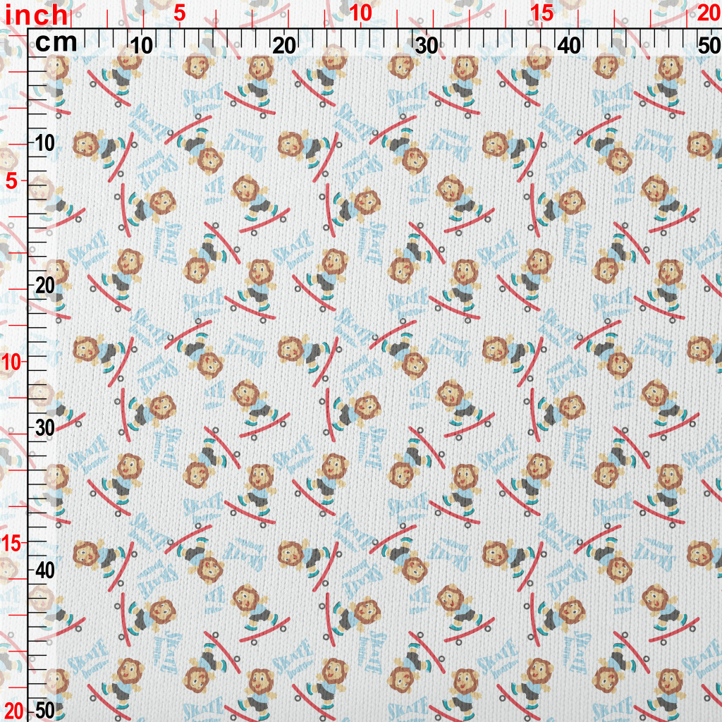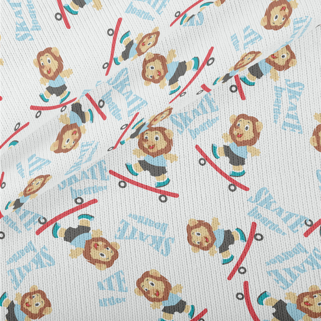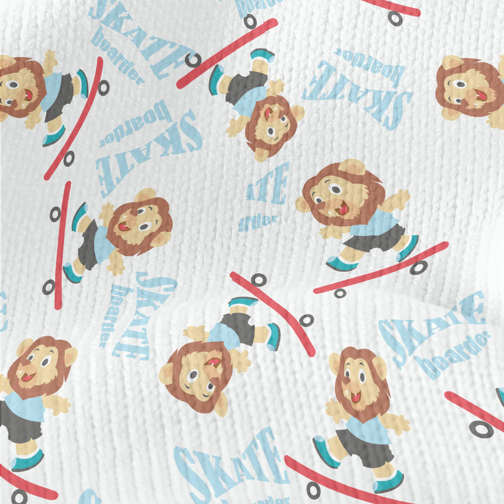 玩滑板的可愛獅子仿毛衣布(幅寬150公分)