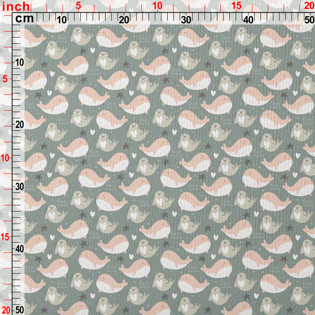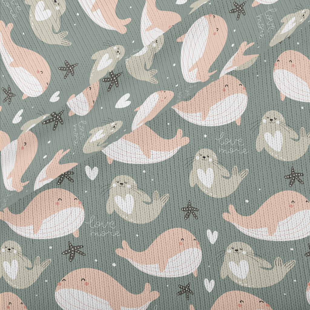 水中玩耍的鯨魚和海豹仿毛衣布(幅寬150公分)