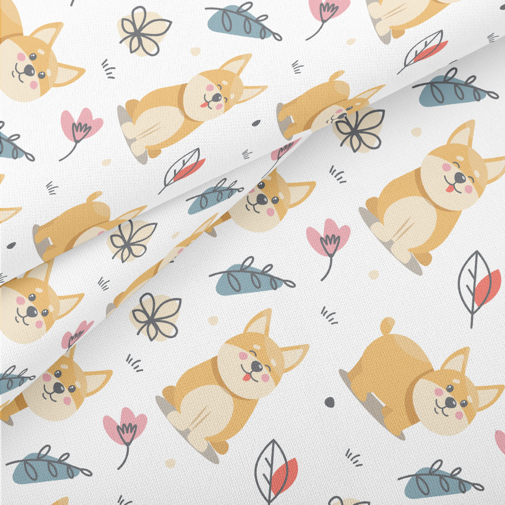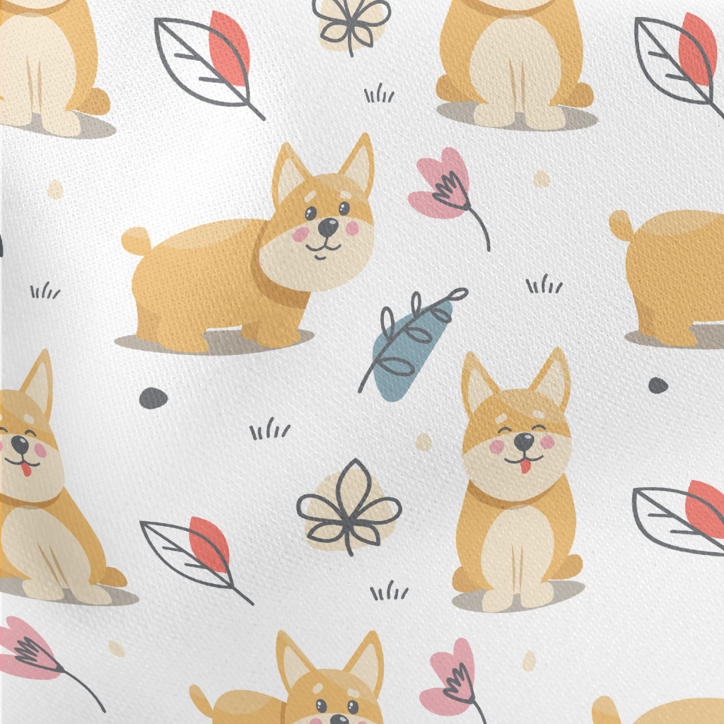 草地上玩耍的小柯基薄棉布(幅寬150公分)
