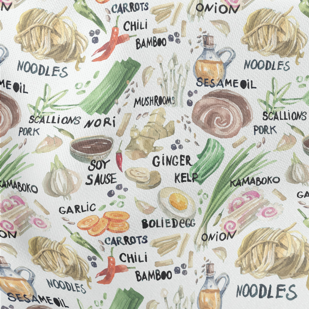 水彩風格的拉麵與配料薄棉布(幅寬150公分)