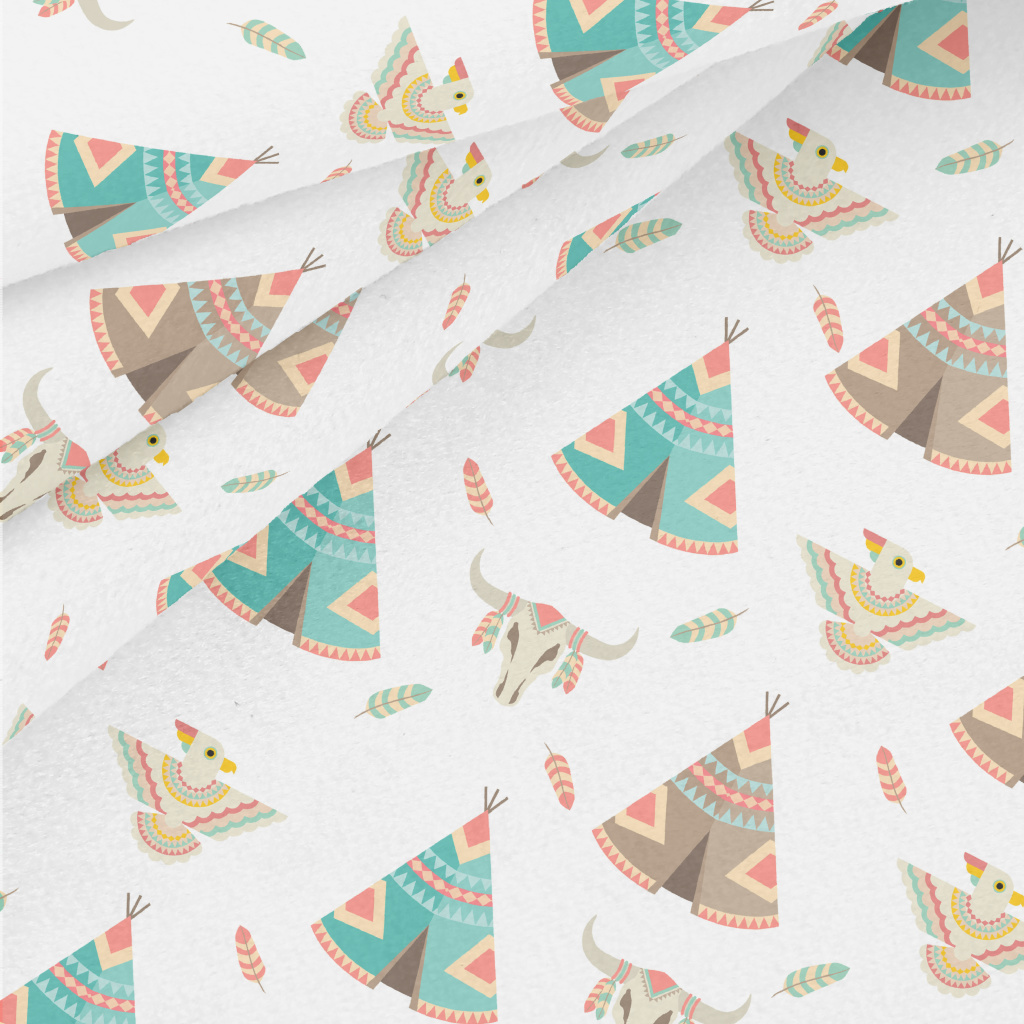 傳統風格的部落圖騰水晶絨(幅寬160公分)
