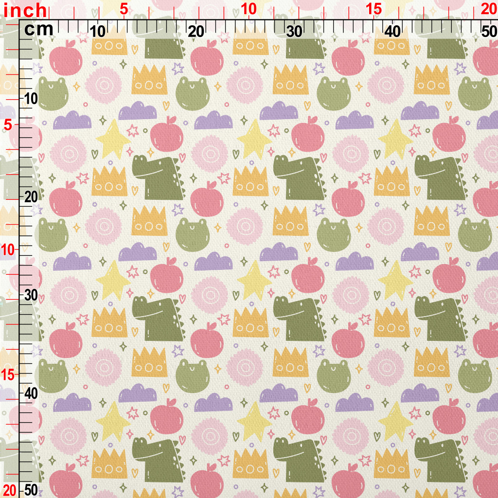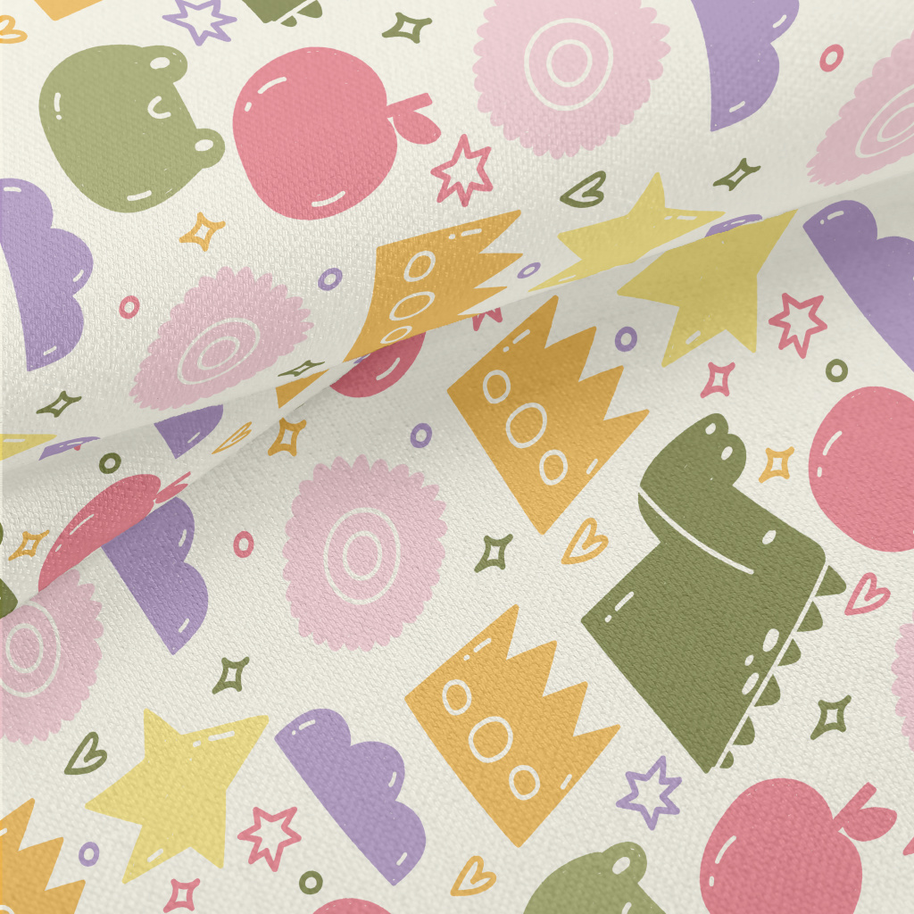 圓滾滾的可愛圖案竹節麻(幅寬150公分)