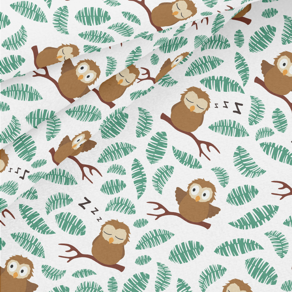 可愛笨拙的貓頭鷹群水晶絨(幅寬160公分)