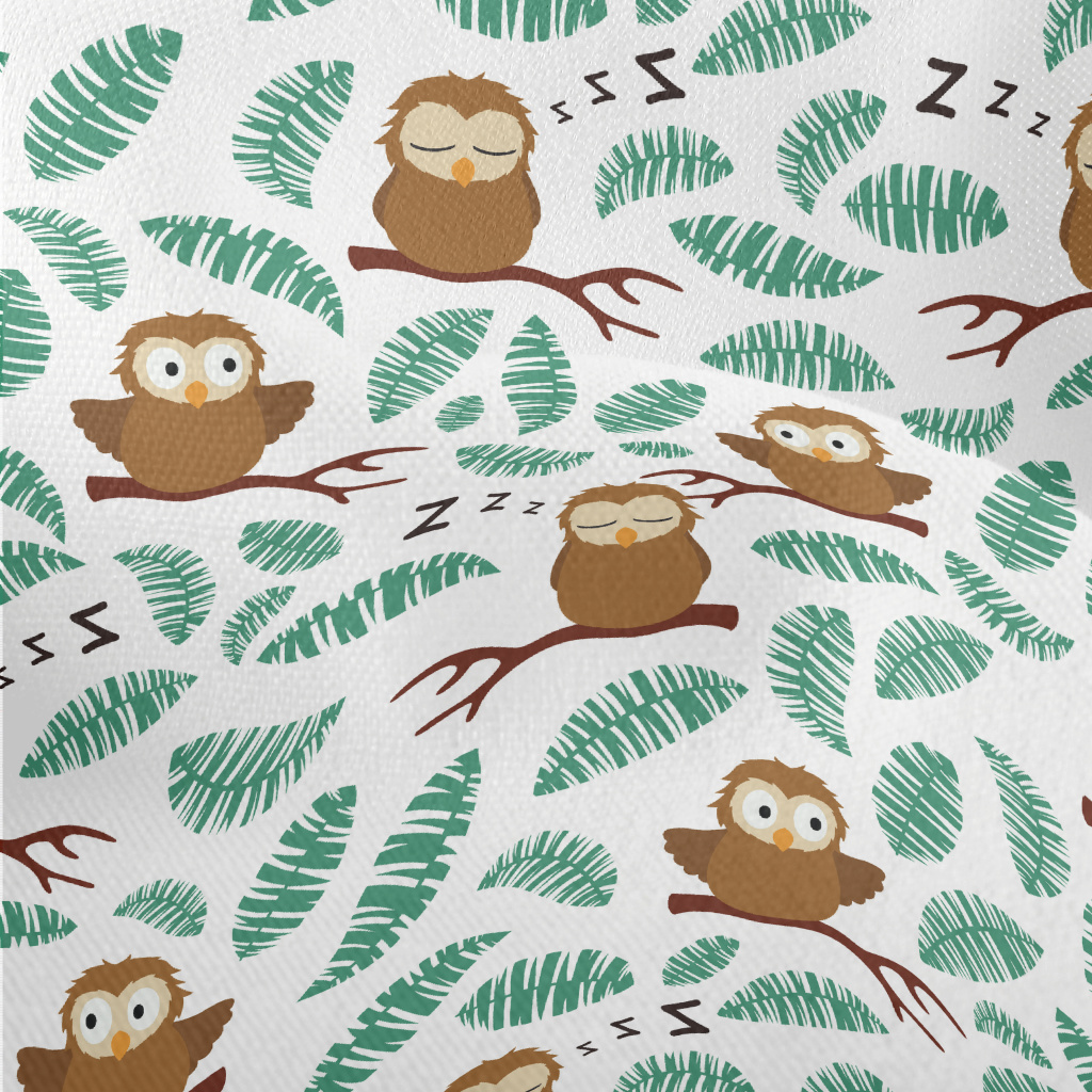 可愛笨拙的貓頭鷹群竹節麻(幅寬150公分)