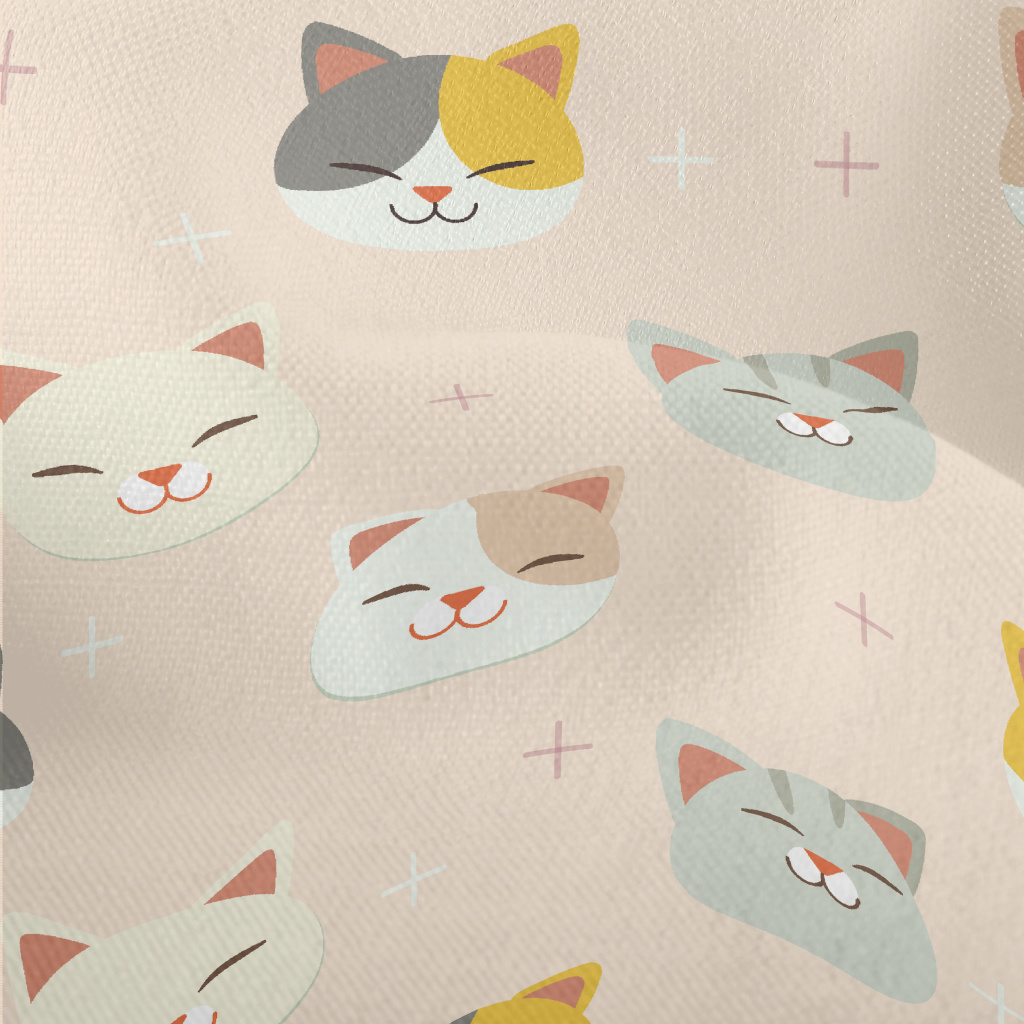 可愛軟萌的貓咪們竹節麻(幅寬150公分)