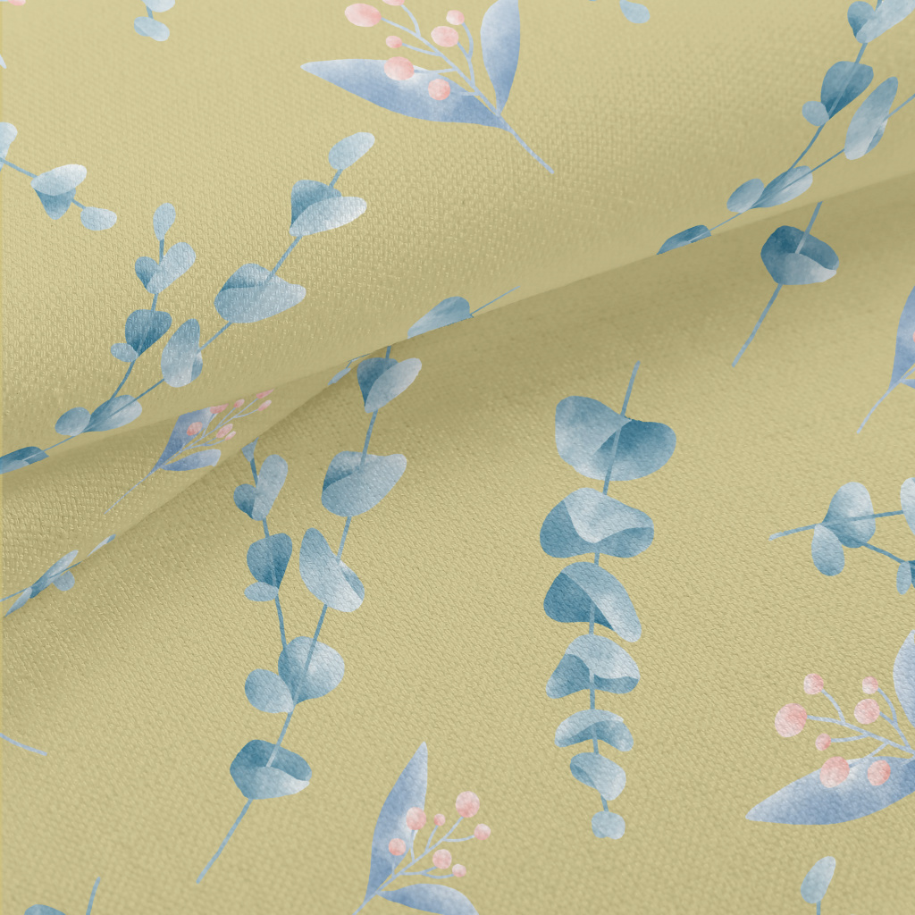 手繪水彩的花草竹節麻(幅寬150公分)