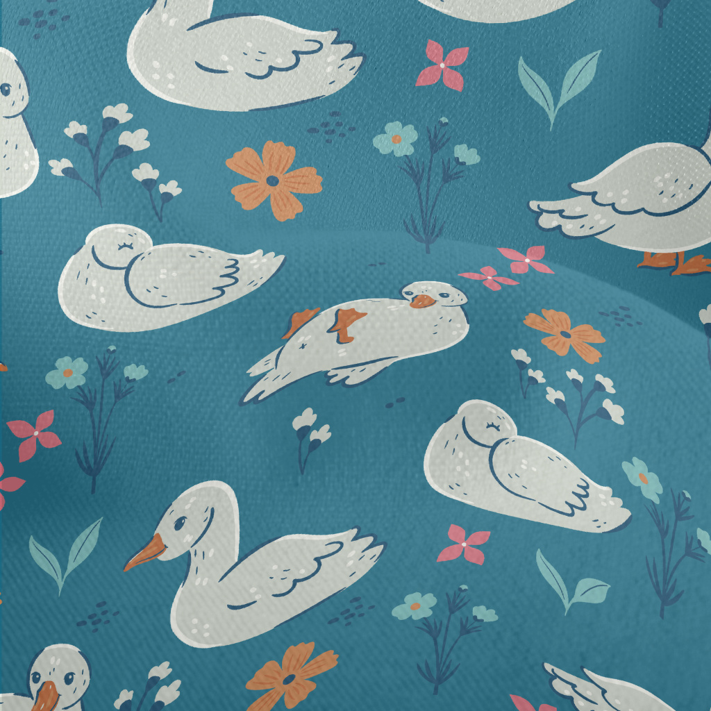 可愛笨拙的鴨子竹節麻(幅寬150公分)