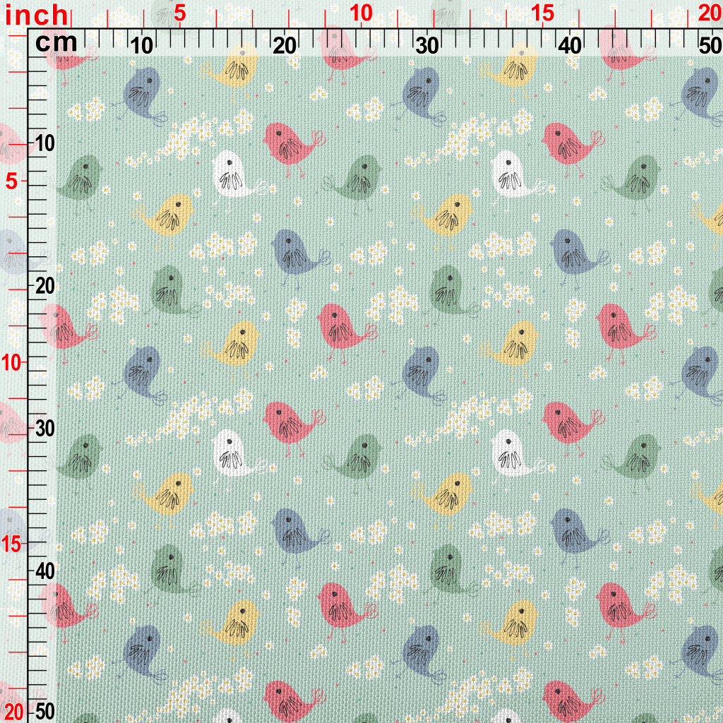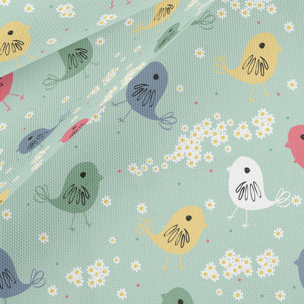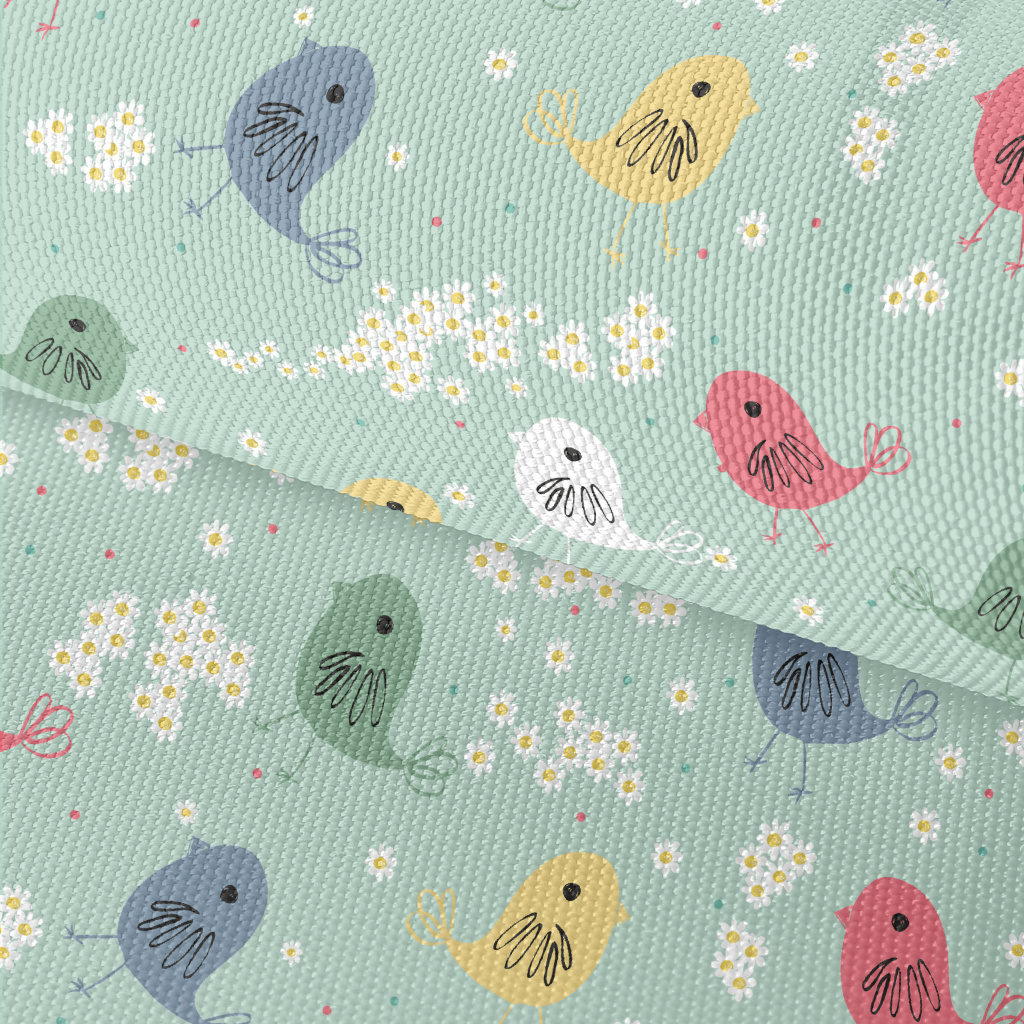 手繪奇特的小鳥與小花牛津布(幅寬150公分)
