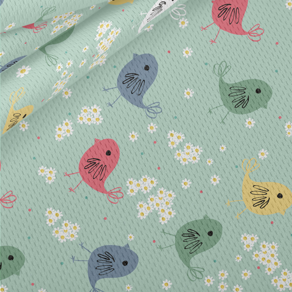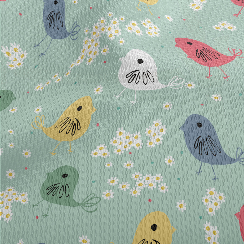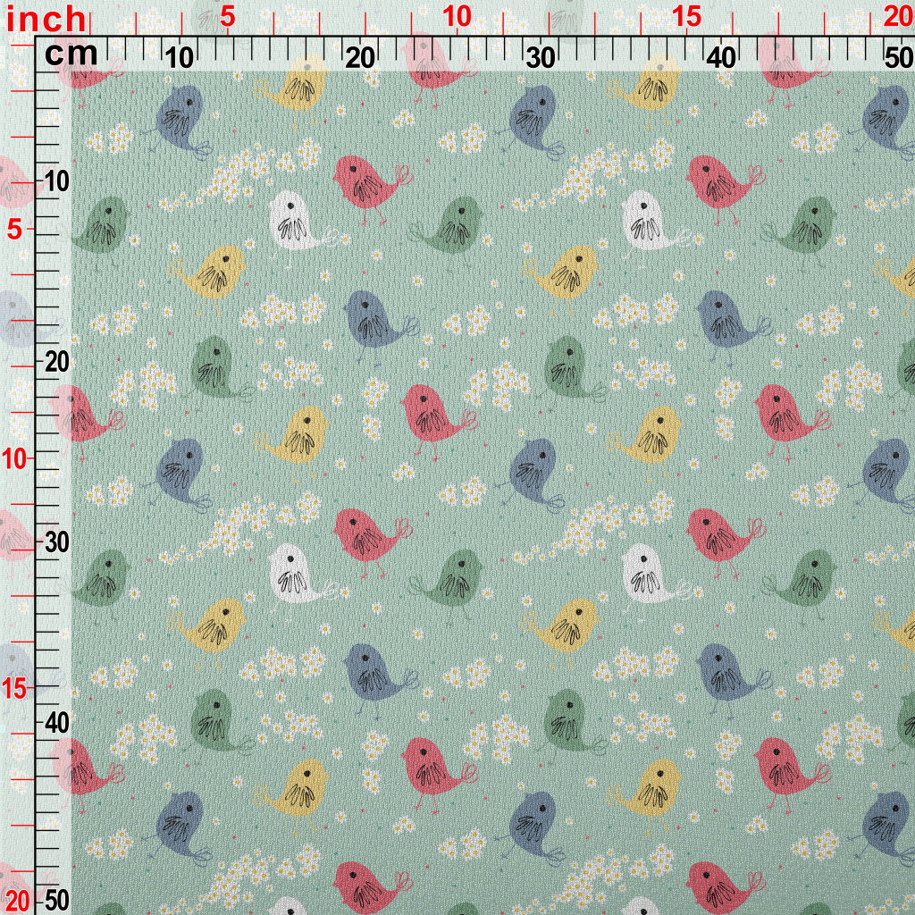 手繪奇特的小鳥與小花鳥眼布(幅寬160公分)