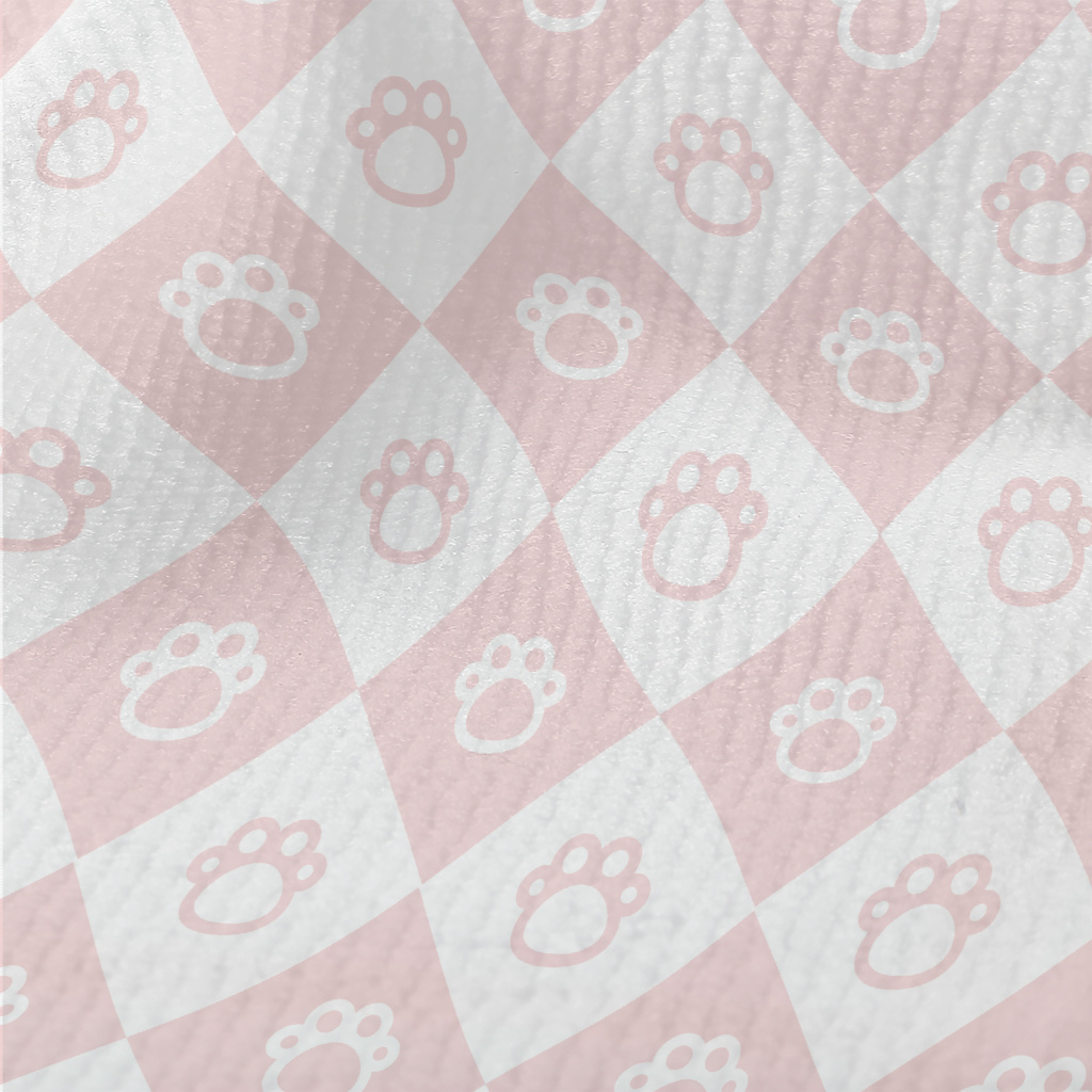 粉紅可愛的貓掌格子毛巾布(幅寬160公分)