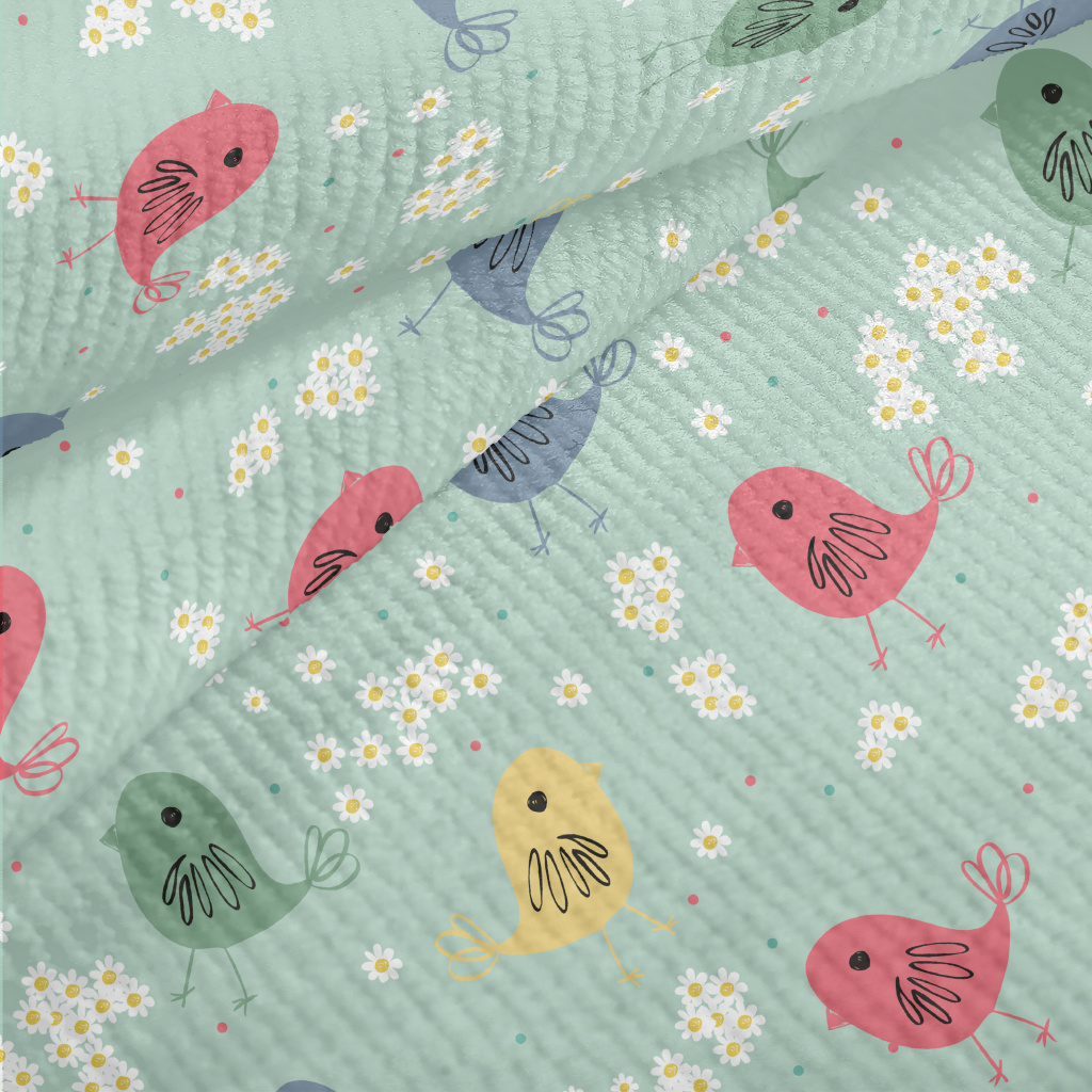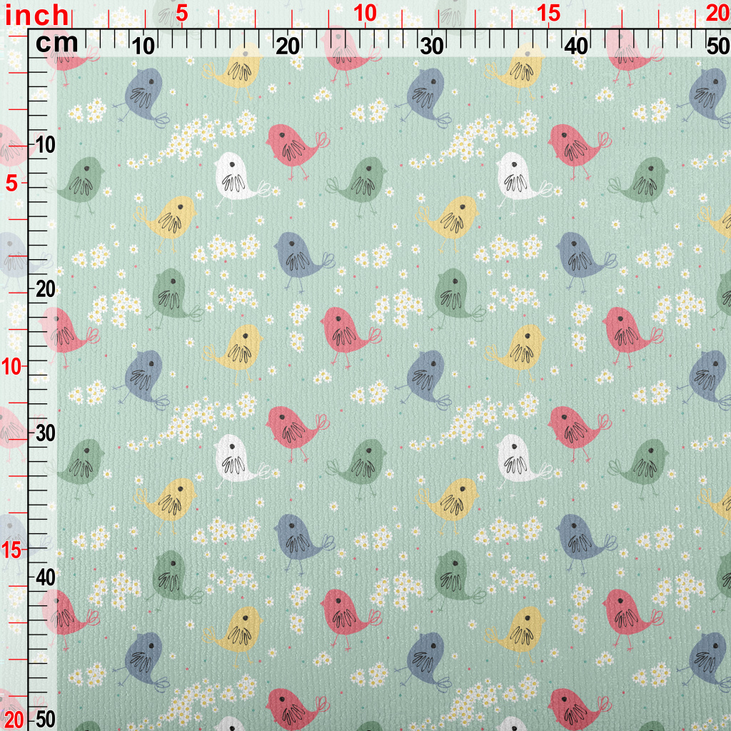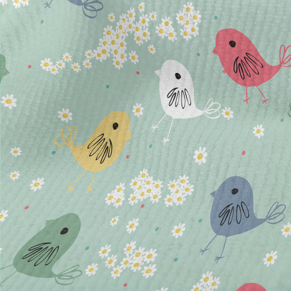 手繪奇特的小鳥與小花毛巾布(幅寬160公分)