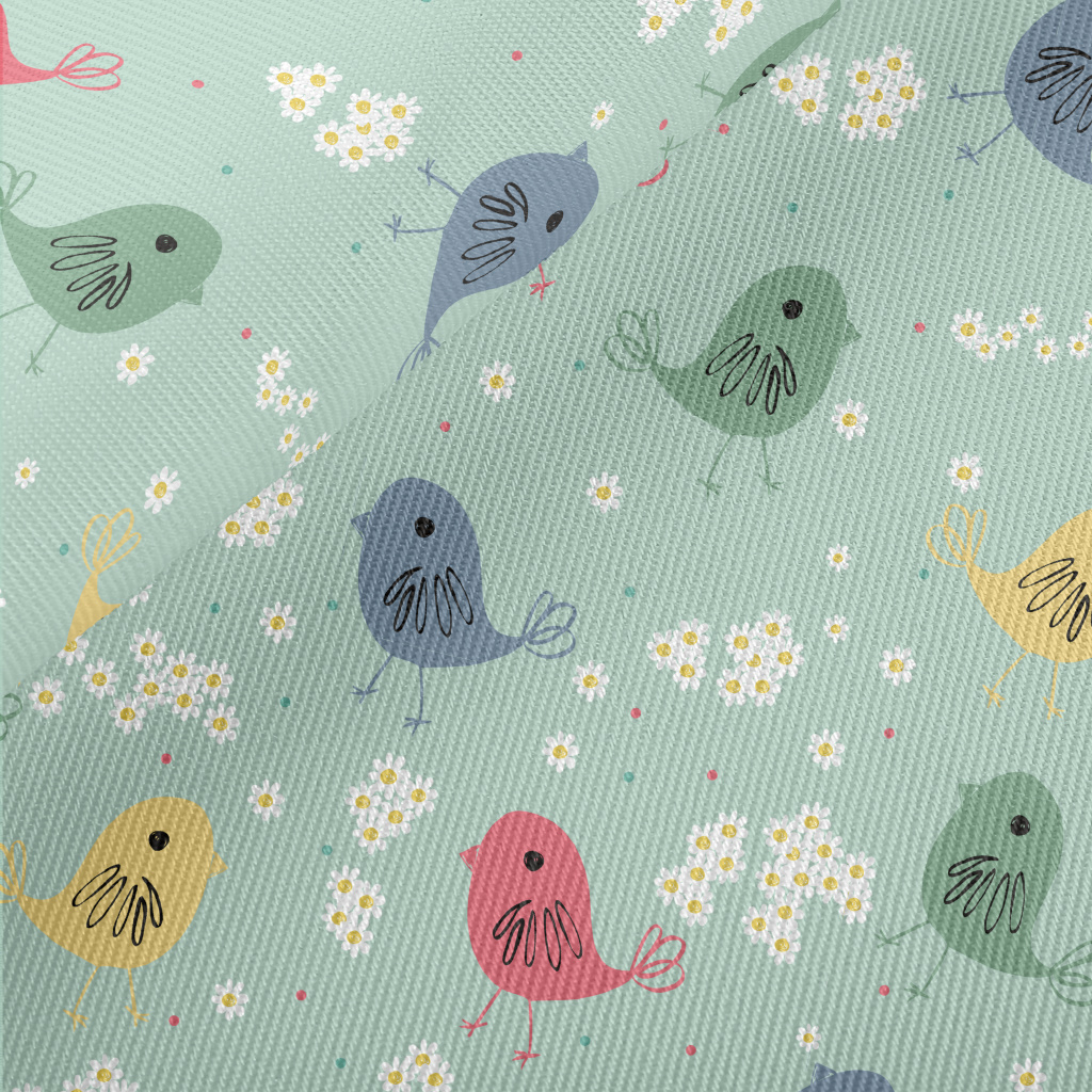 手繪奇特的小鳥與小花斜紋布(幅寬150公分)