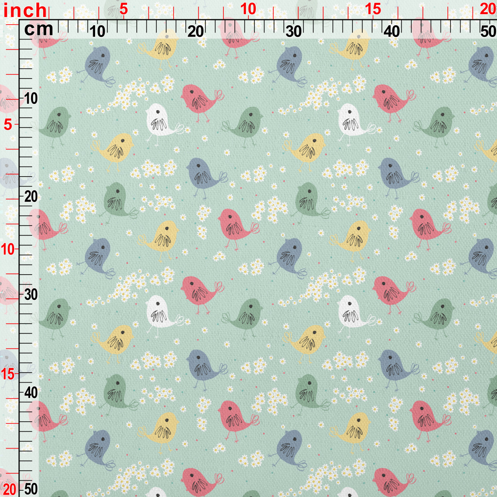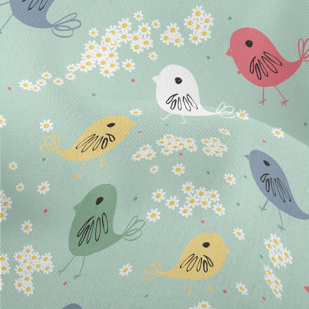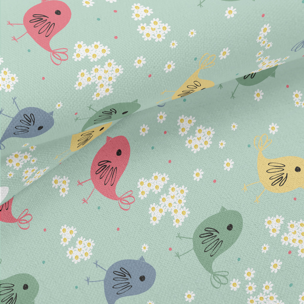 手繪奇特的小鳥與小花竹節麻(幅寬150公分)