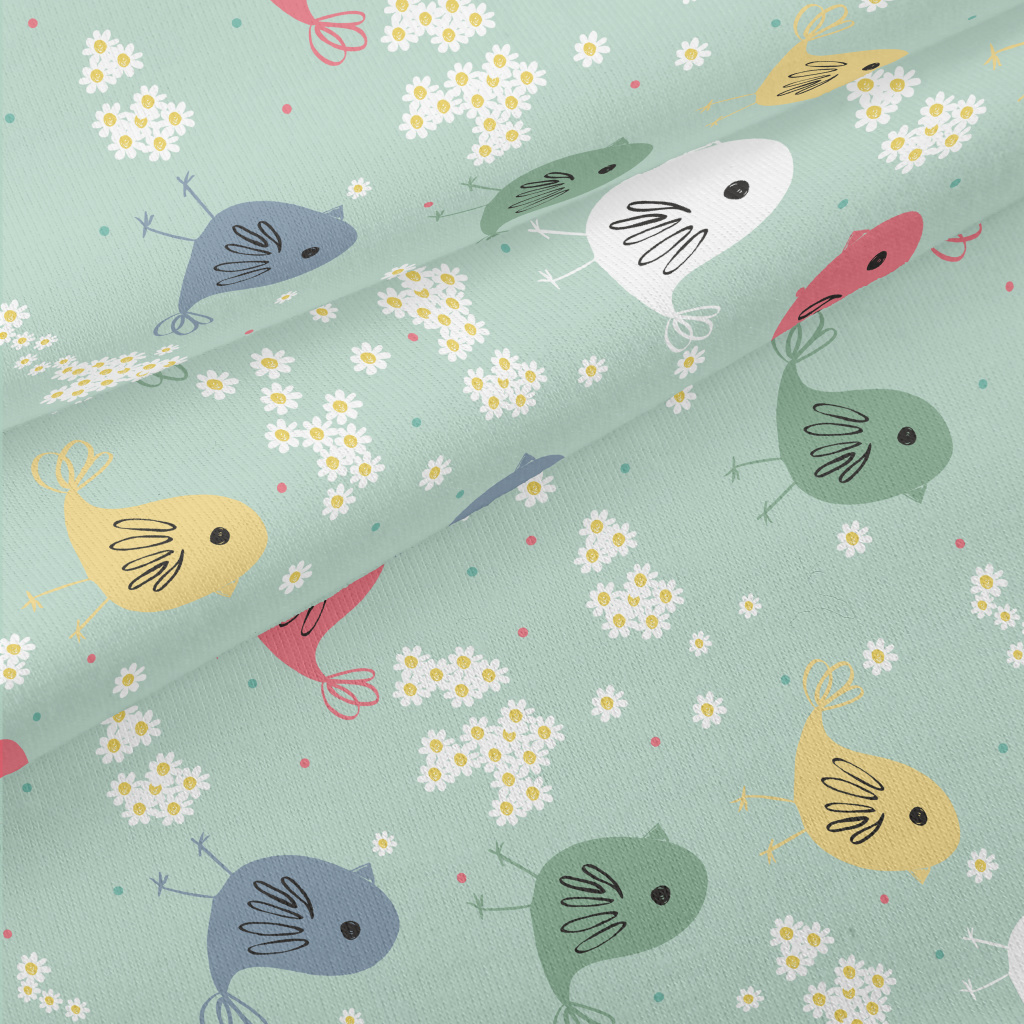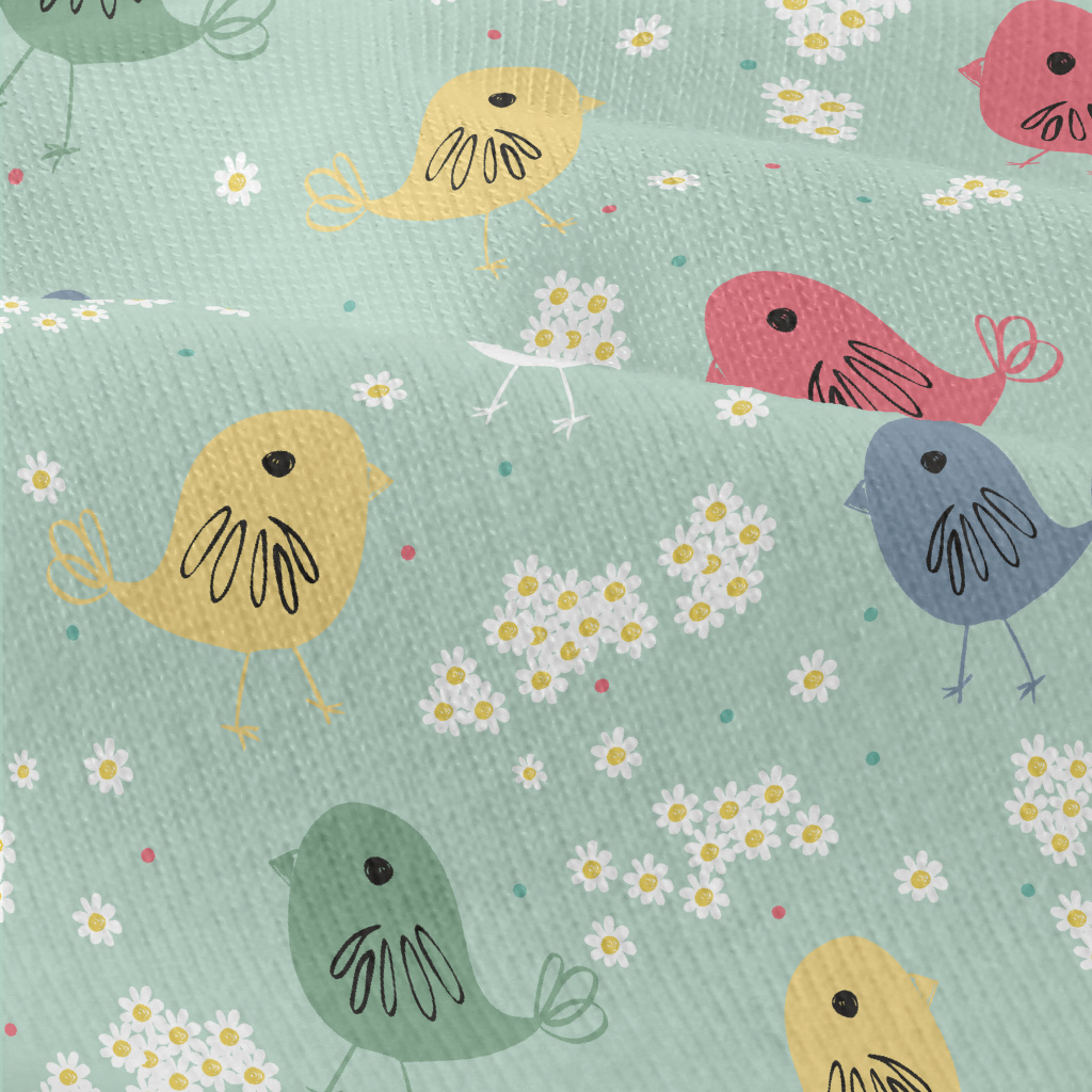 手繪奇特的小鳥與小花仿棉布(幅寬150公分)