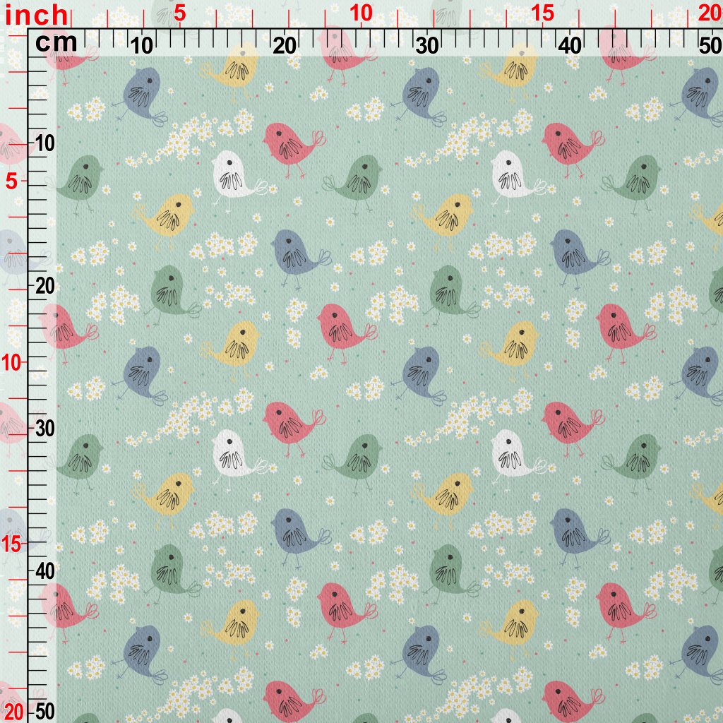 手繪奇特的小鳥與小花刷毛布(幅寬150公分)