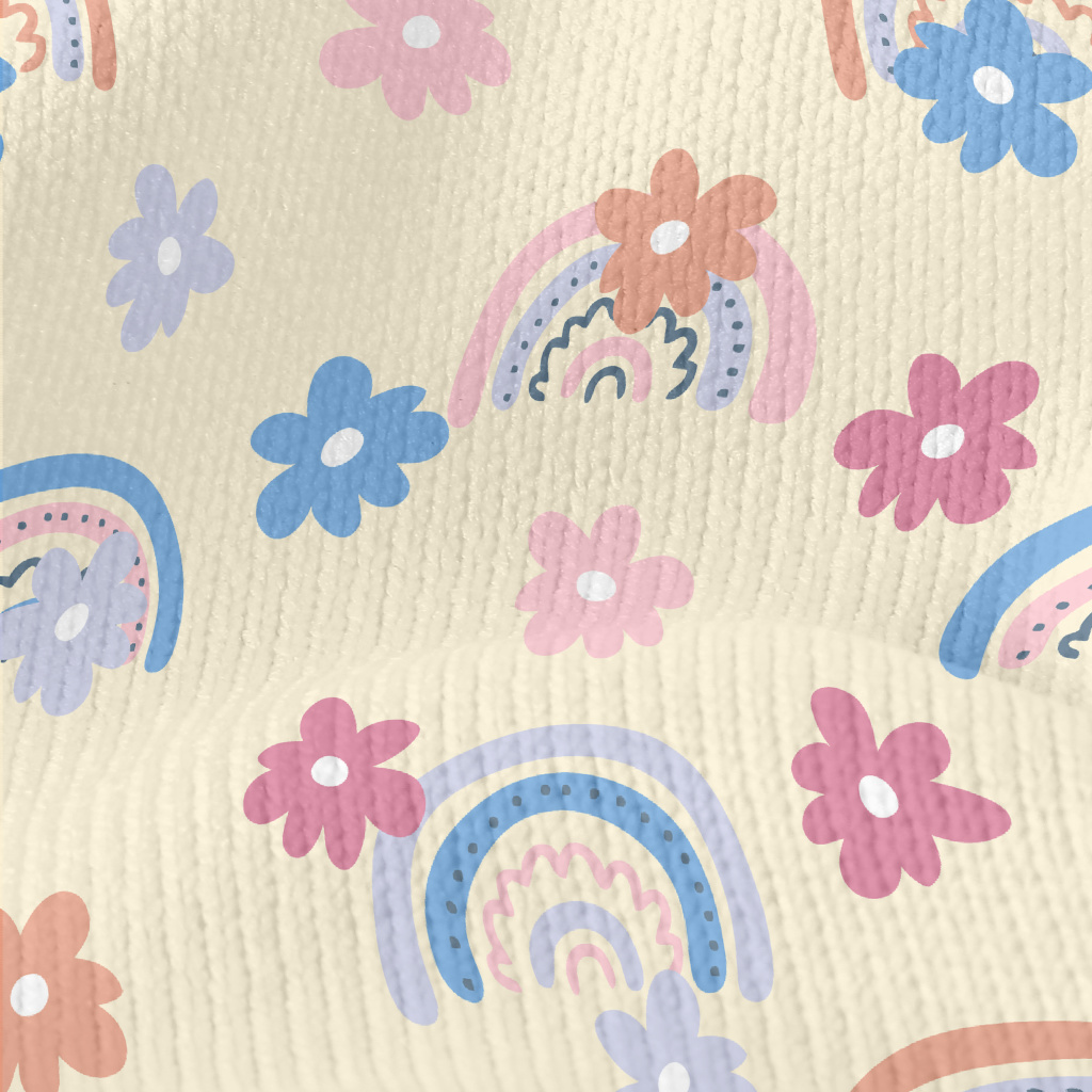 可愛手繪的彩虹花朵仿毛衣布(幅寬150公分)