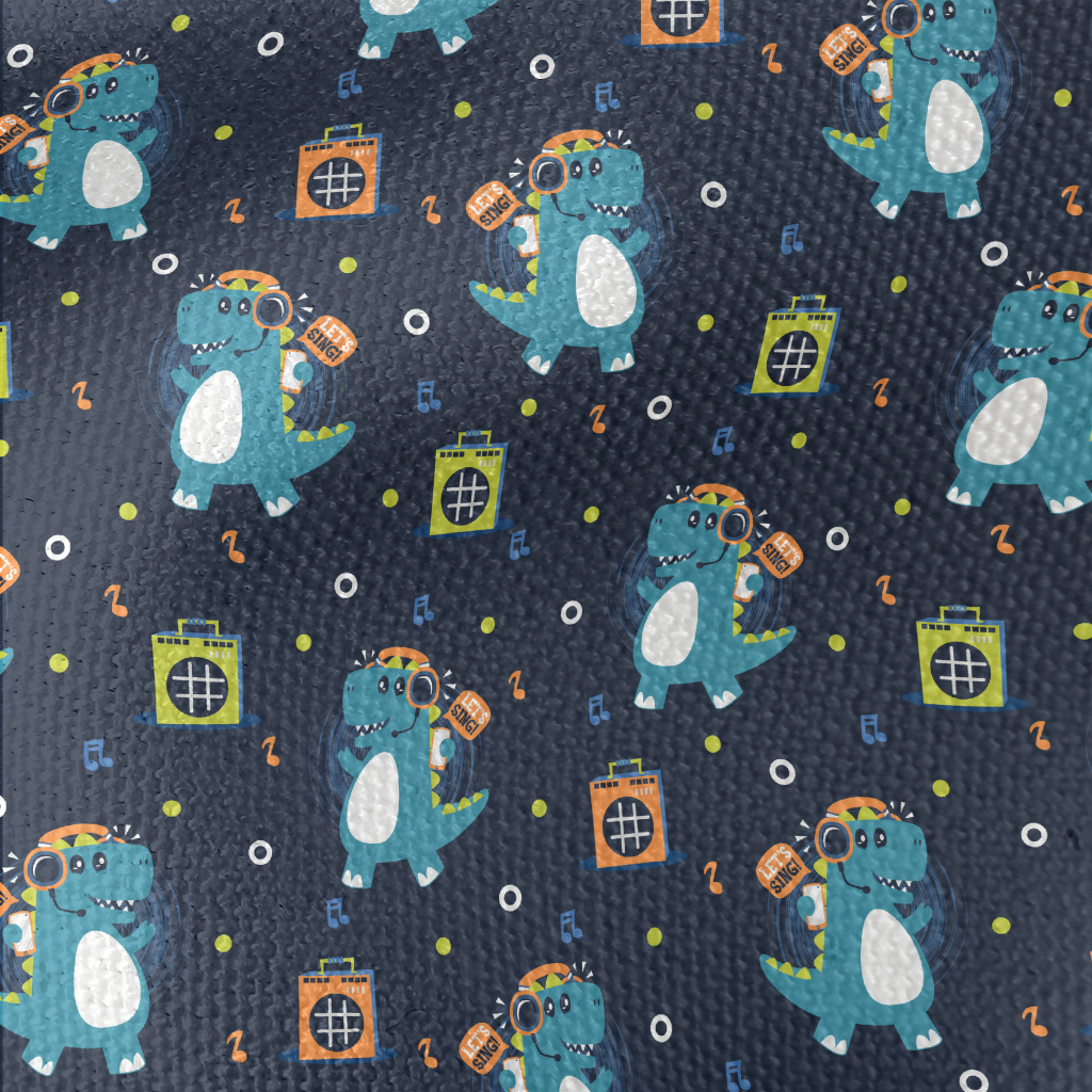 聽音樂搖擺的恐龍帆布(幅寬150公分)