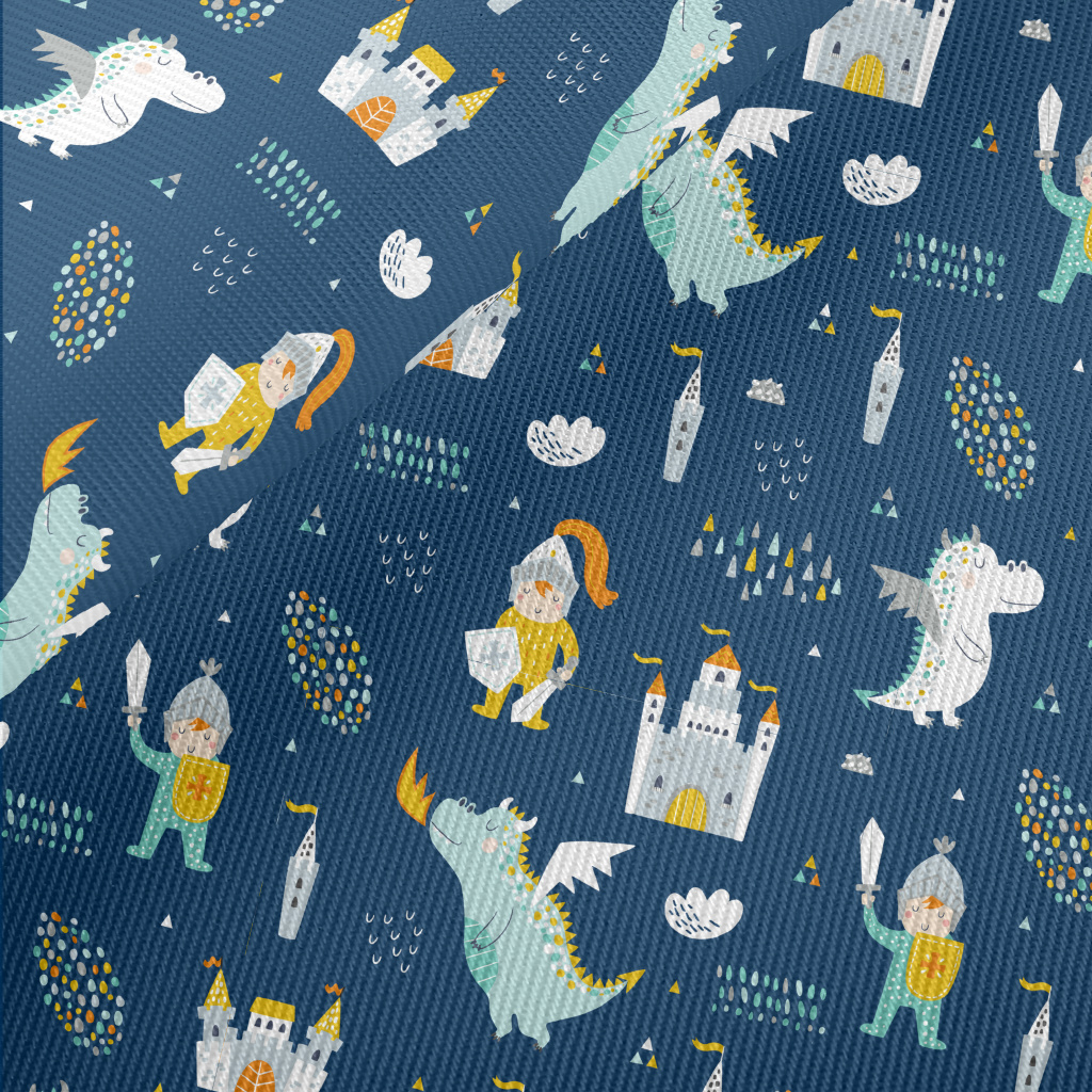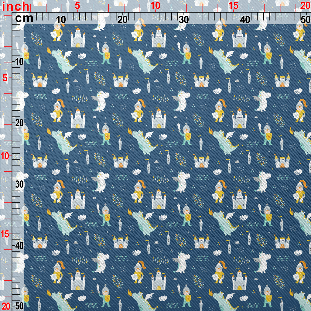 童話風格的王子與魔龍斜紋布(幅寬150公分)