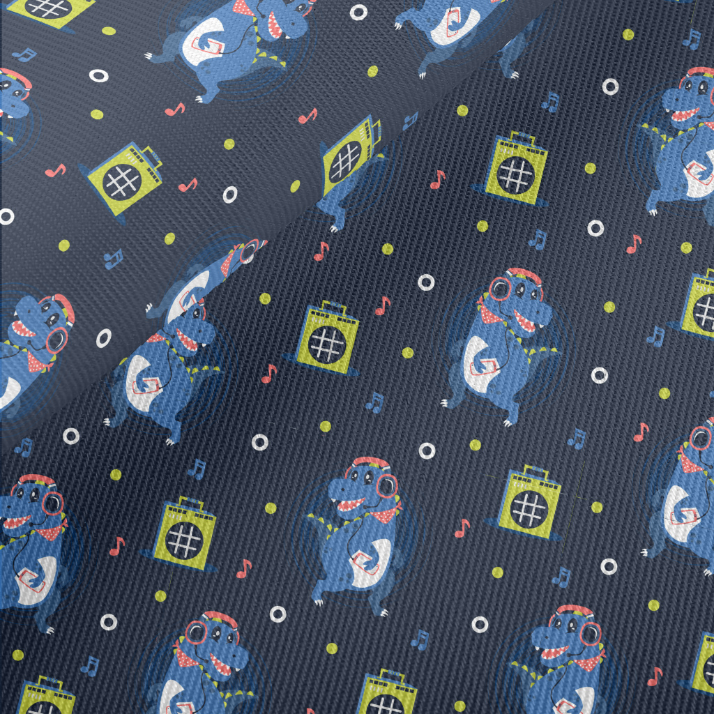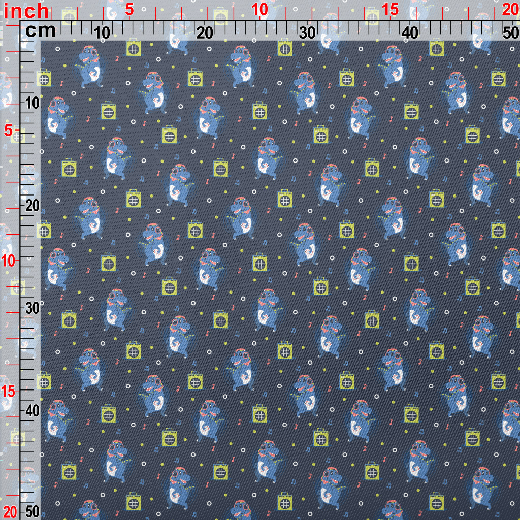 跟著音樂跳舞的恐龍斜紋布(幅寬150公分)