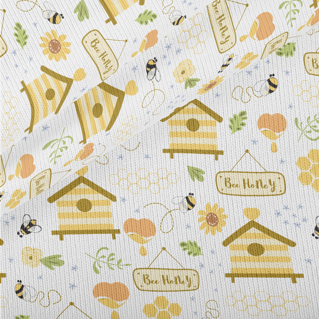 圓滾可愛的采蜜蜂仿毛衣布(幅寬150公分)