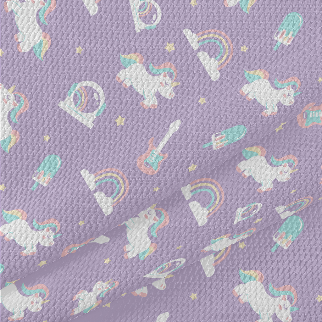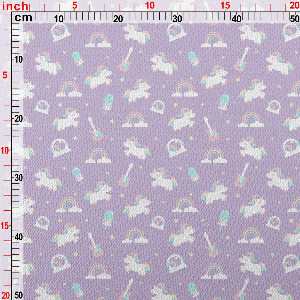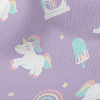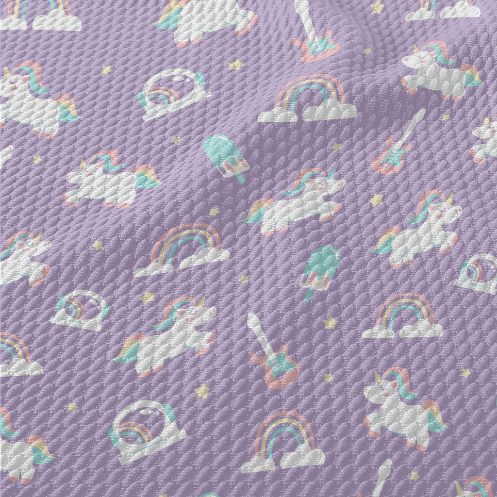 繽紛冷色調的獨角獸圖案泡泡布(幅寬160公分)