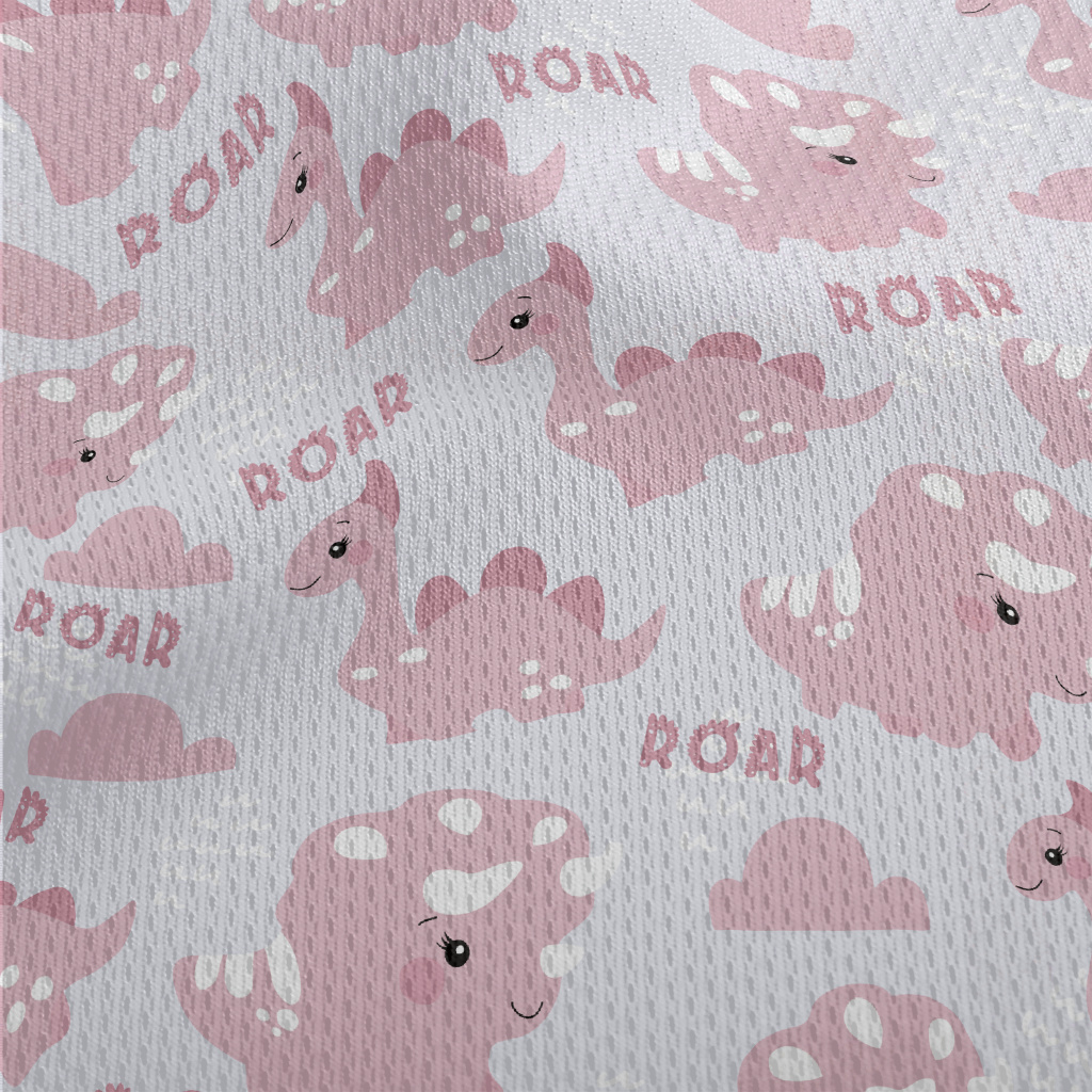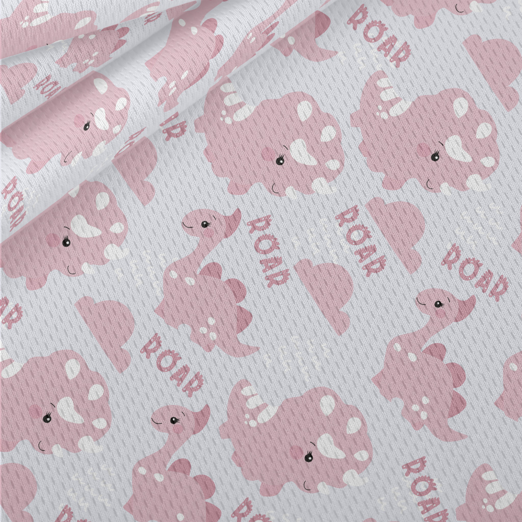 粉紅乖巧的恐龍圖案鳥眼布(幅寬160公分)