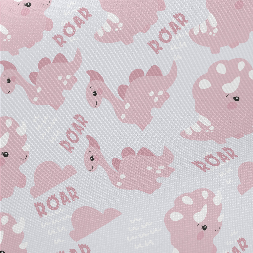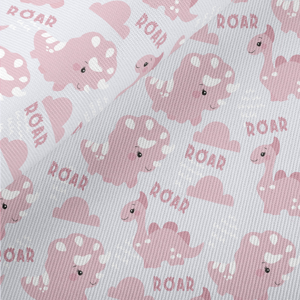 粉紅乖巧的恐龍圖案斜紋布(幅寬150公分)