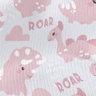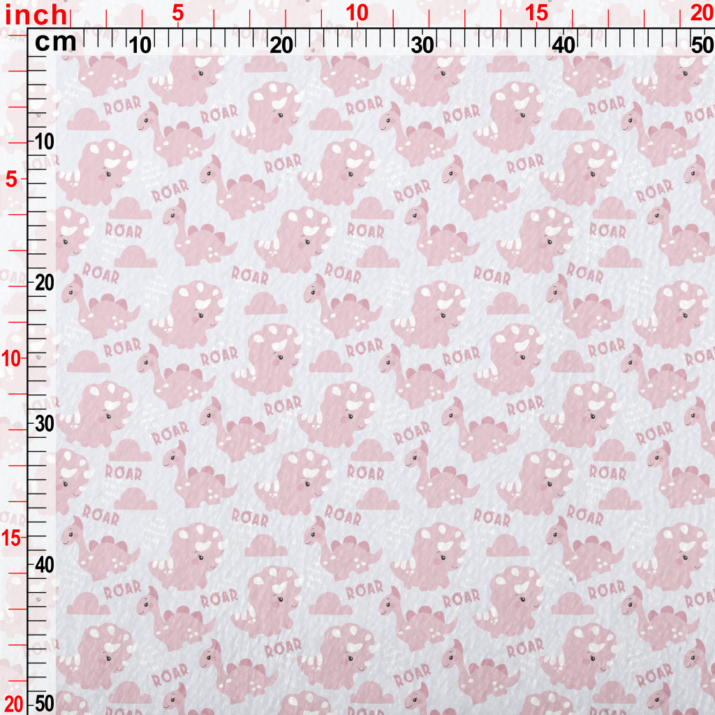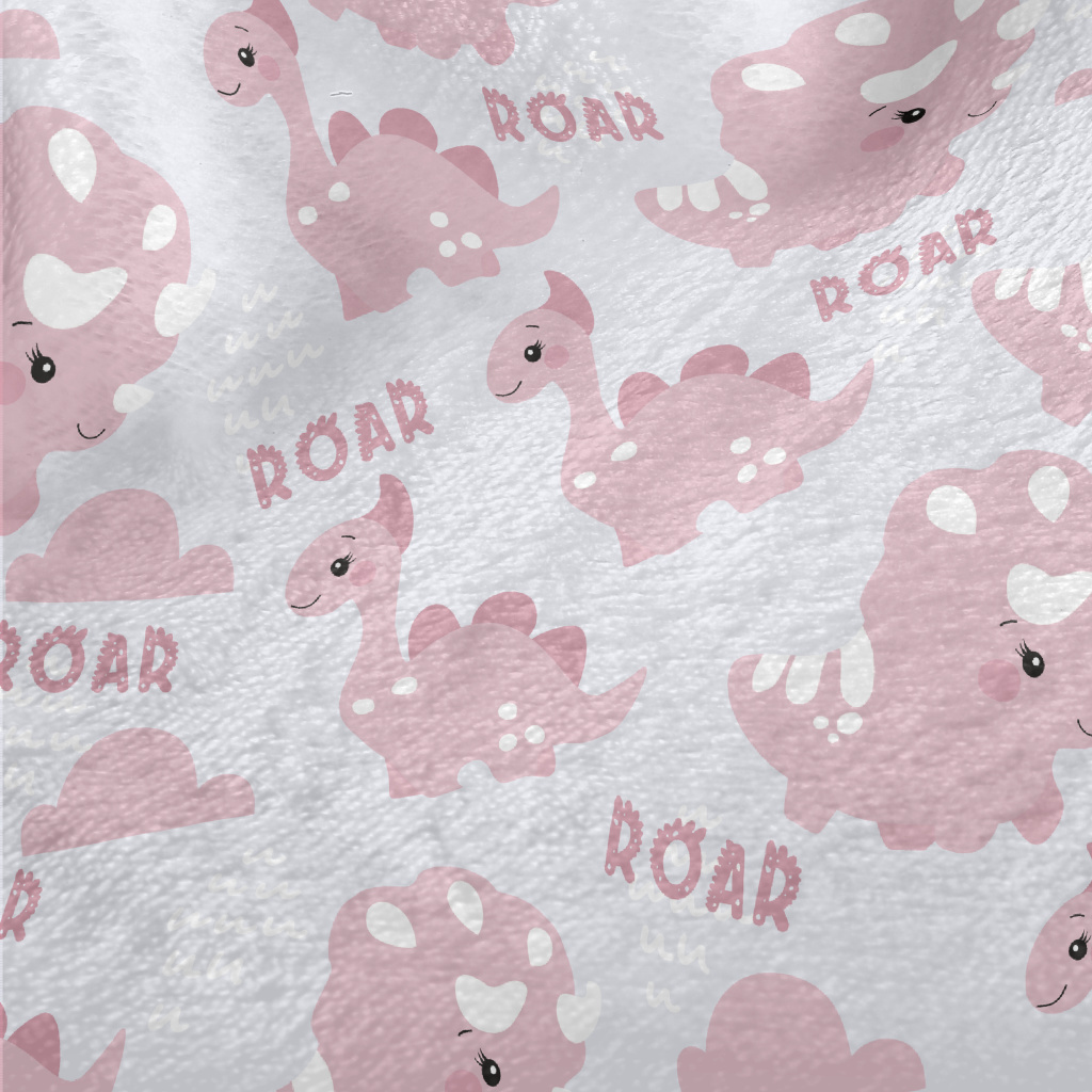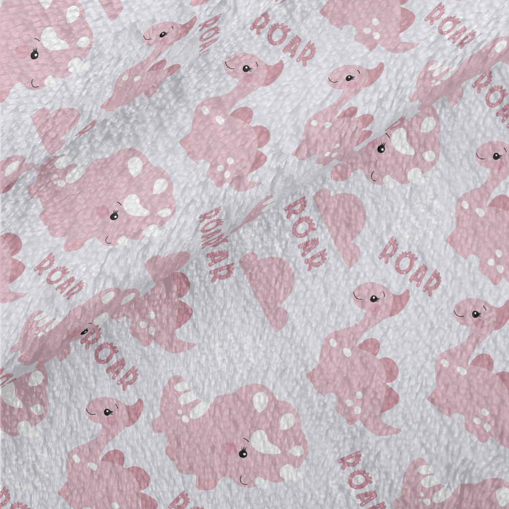 粉紅乖巧的恐龍圖案法蘭絨(幅寬150公分)