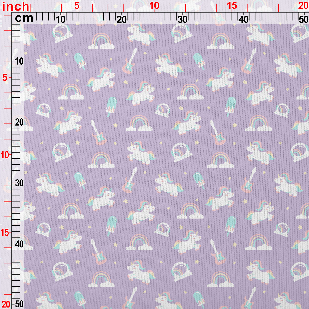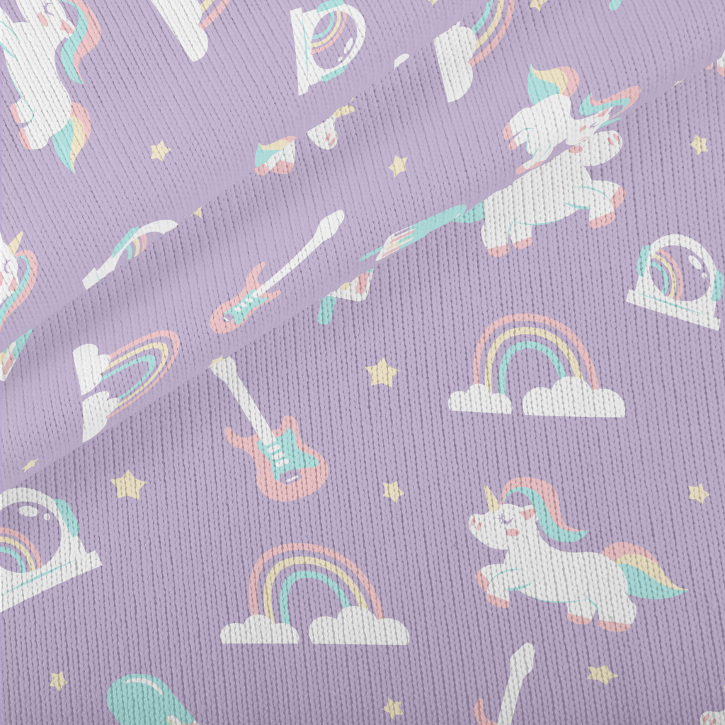 繽紛冷色調的獨角獸圖案仿毛衣布(幅寬150公分)