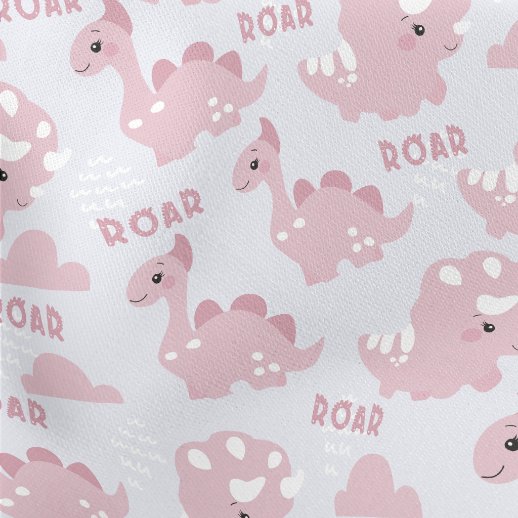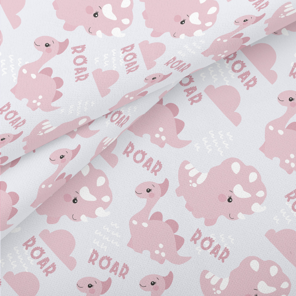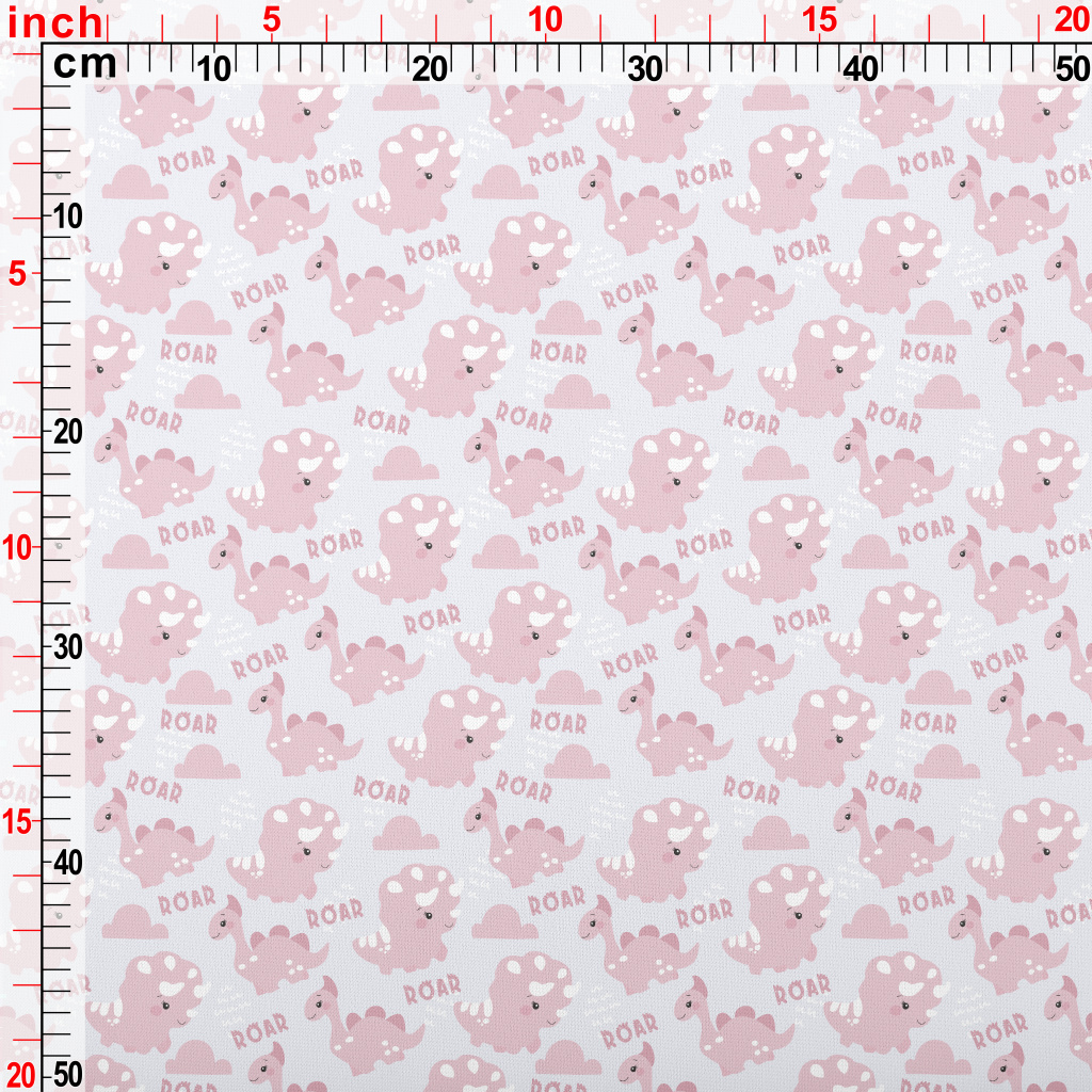 粉紅乖巧的恐龍圖案薄棉布(幅寬150公分)