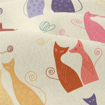 五顏六色的雙對貓咪雪紡布(幅寬150公分)