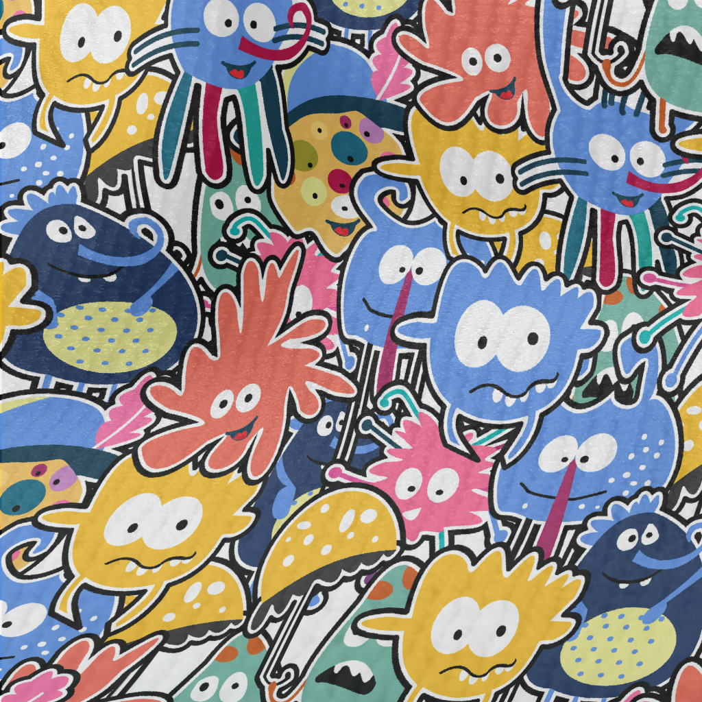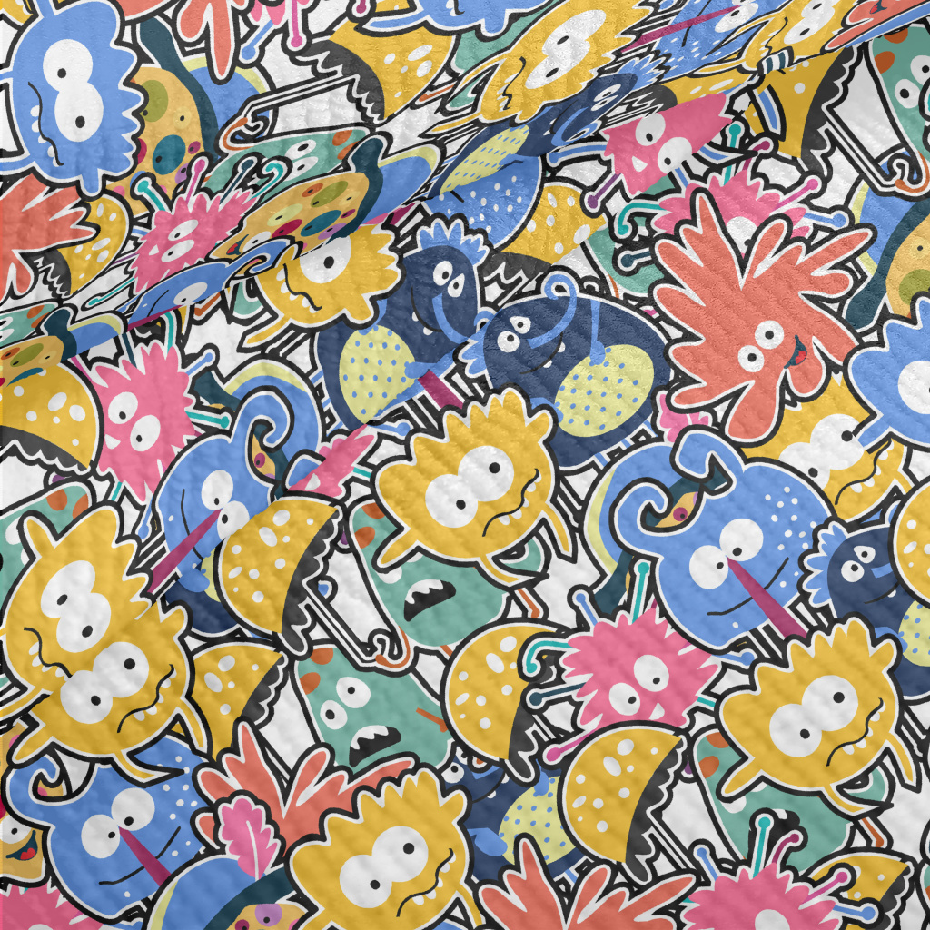 搞怪畸形的外星人圖案毛巾布(幅寬160公分)